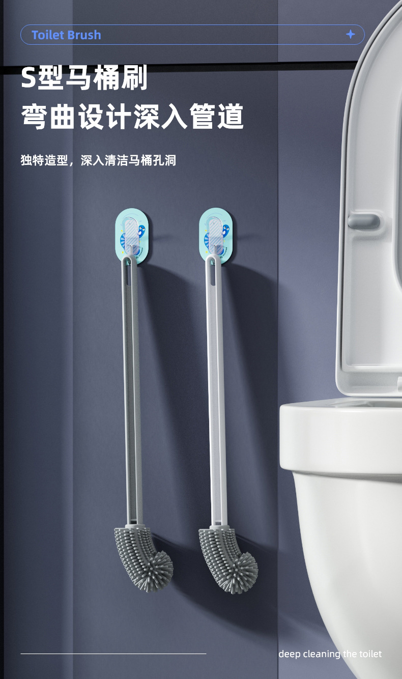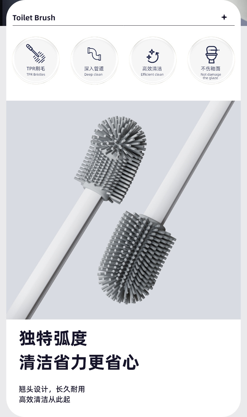 신제품 곡선형 실리콘 변기솔, 사각지대 없는 실리콘 화장실솔, 긴 손잡이 변기솔, 재고 도매 판매