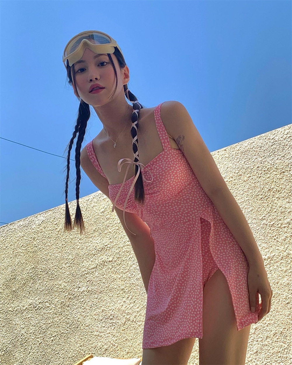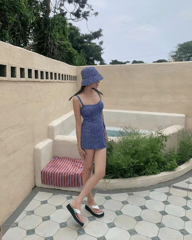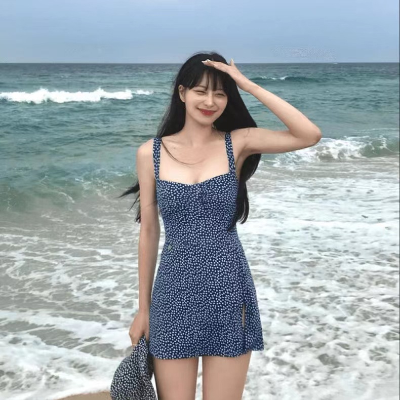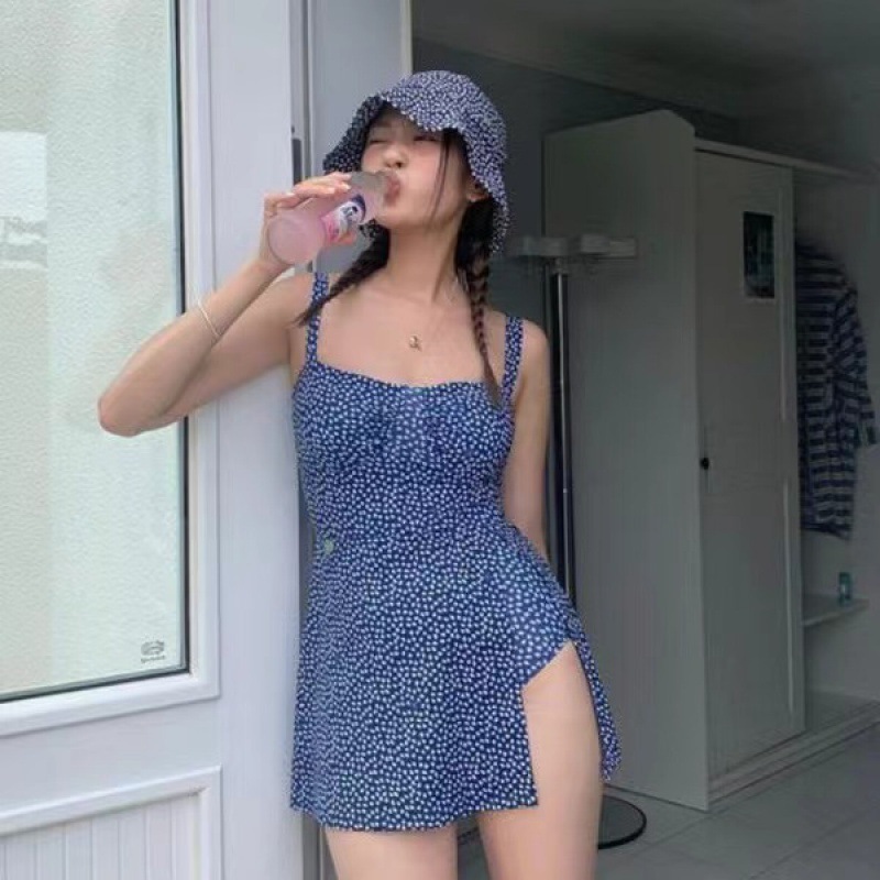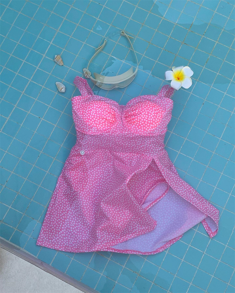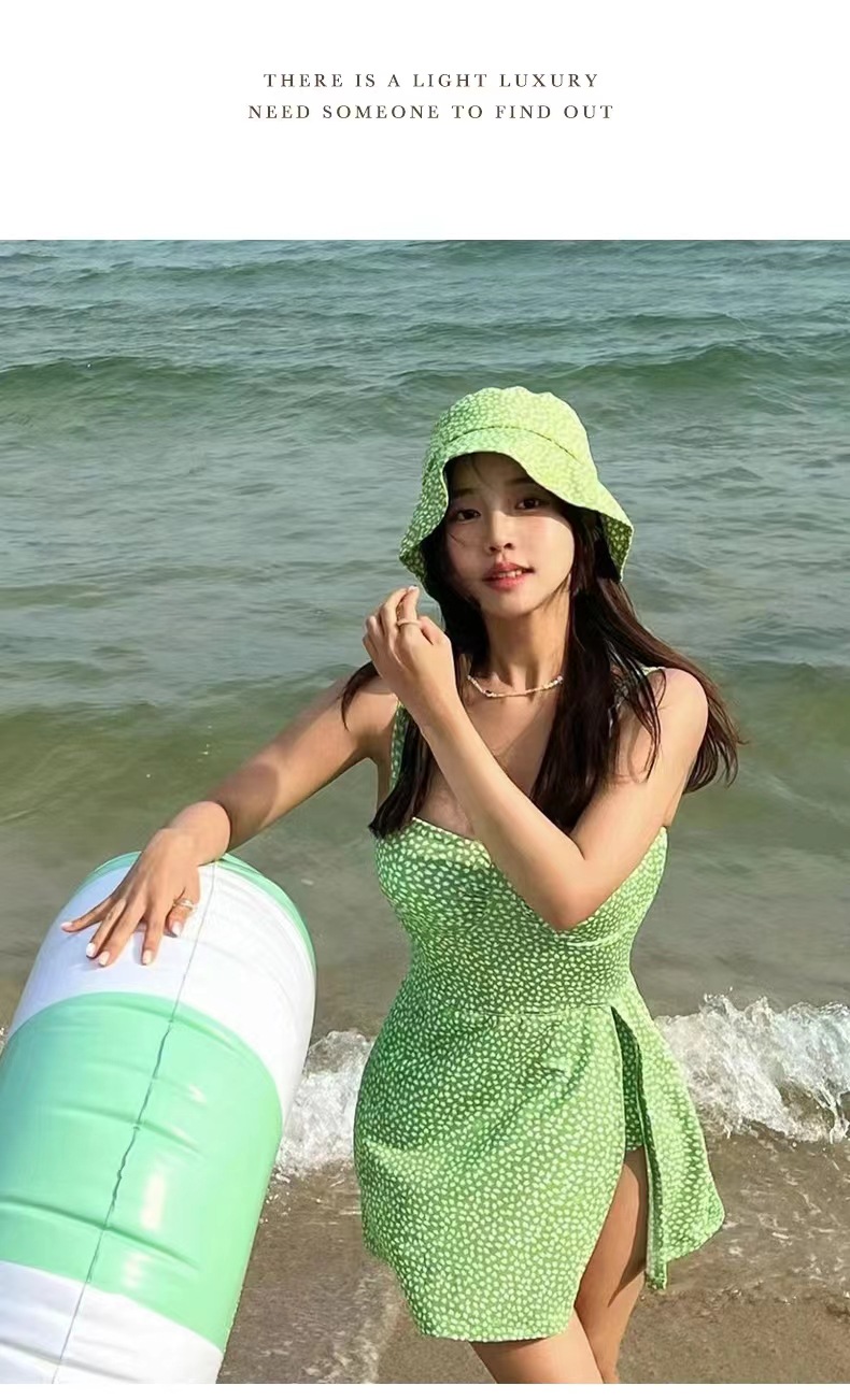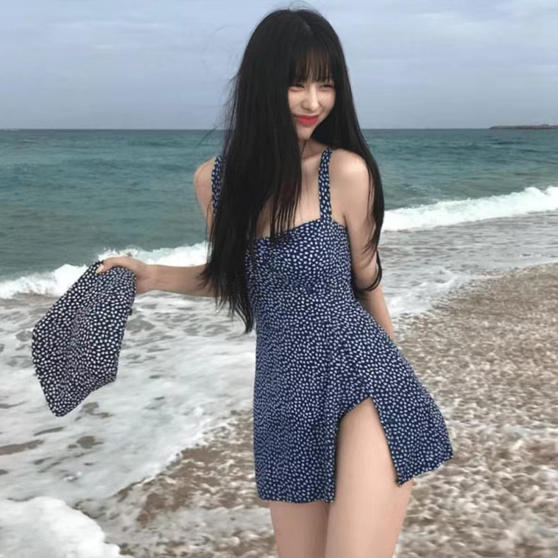 24 새로운 도착 슬링 수영복 여성의 섹시한 끈이없는 분할 수영복 유행 신선한 도트 보수적 인 스커트 수영복스토어 가기