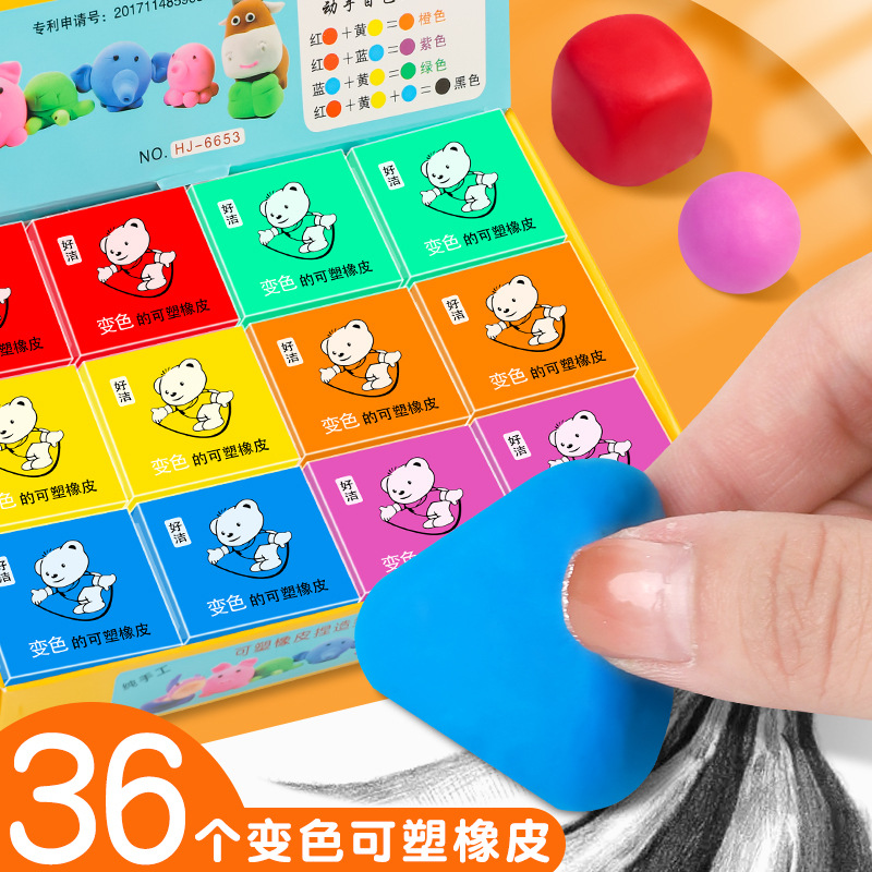 36 스크래치 없음 컬러 블랙 고무 플라스틱 지우개 컬러 초등학생을위한 어린이 보상 용품