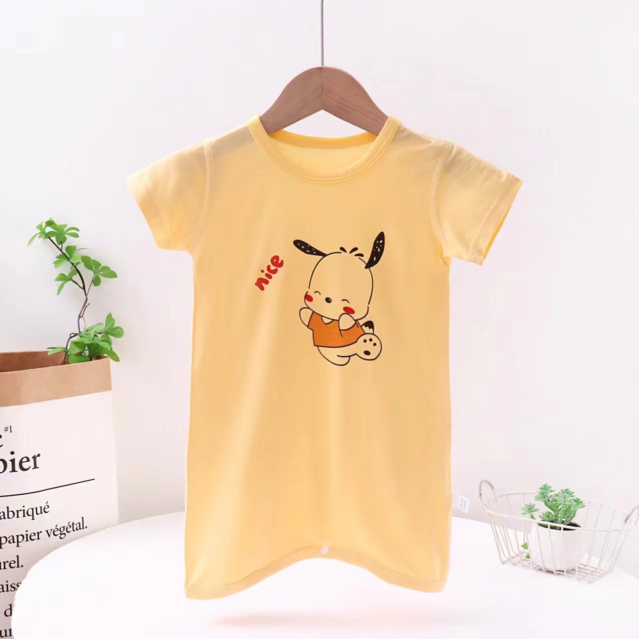 • 아이스 실크 잠옷(노란색 행복한 강아지)