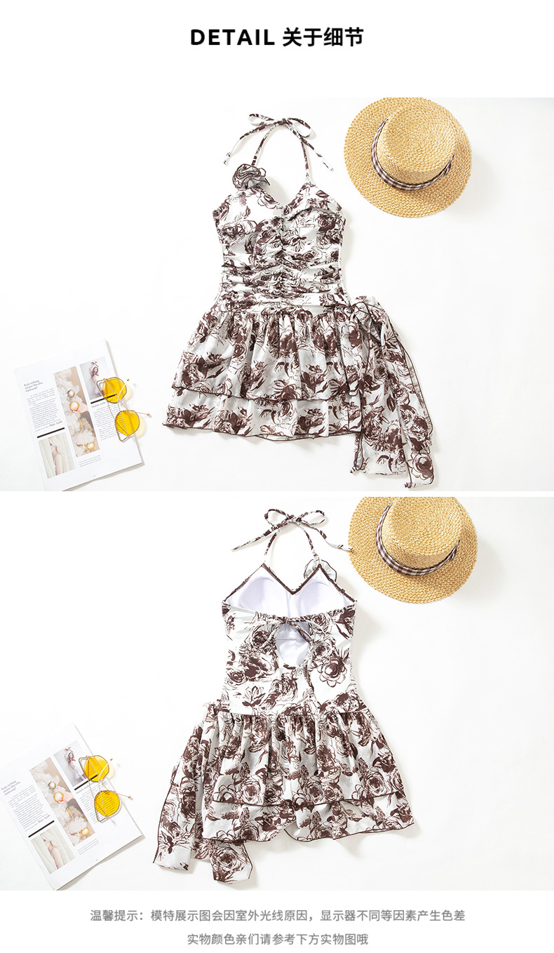 순수한 욕망 달콤한 목 수영복 여성 여름 복강 슬리밍 로즈 꽃 보수적 인 온천 수영복스토어 가기