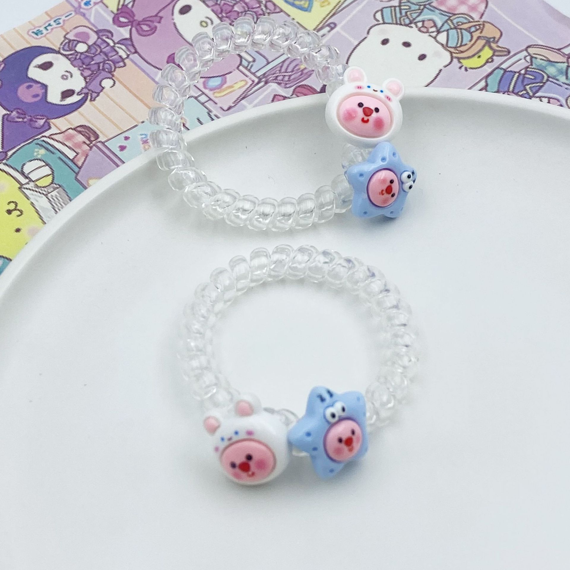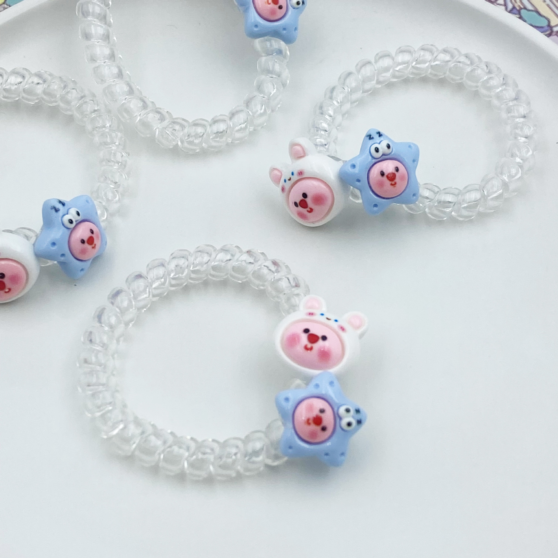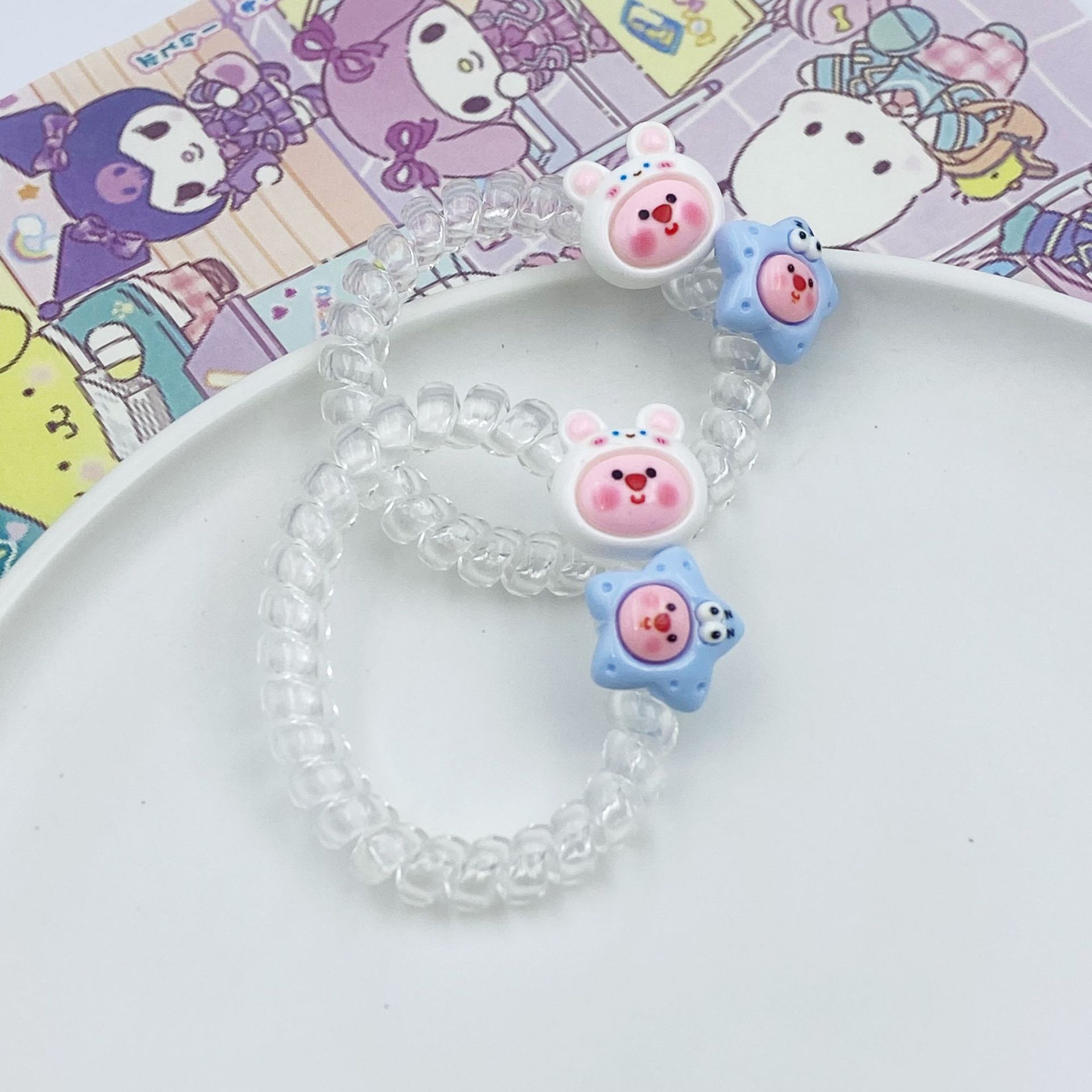 여름 신선한 투명한 전화 라인 머리 반지 루비 비버 머리 밧줄 귀여운 만화 소녀 심장 고무 텐트 학생 머리 로프스토어 가기