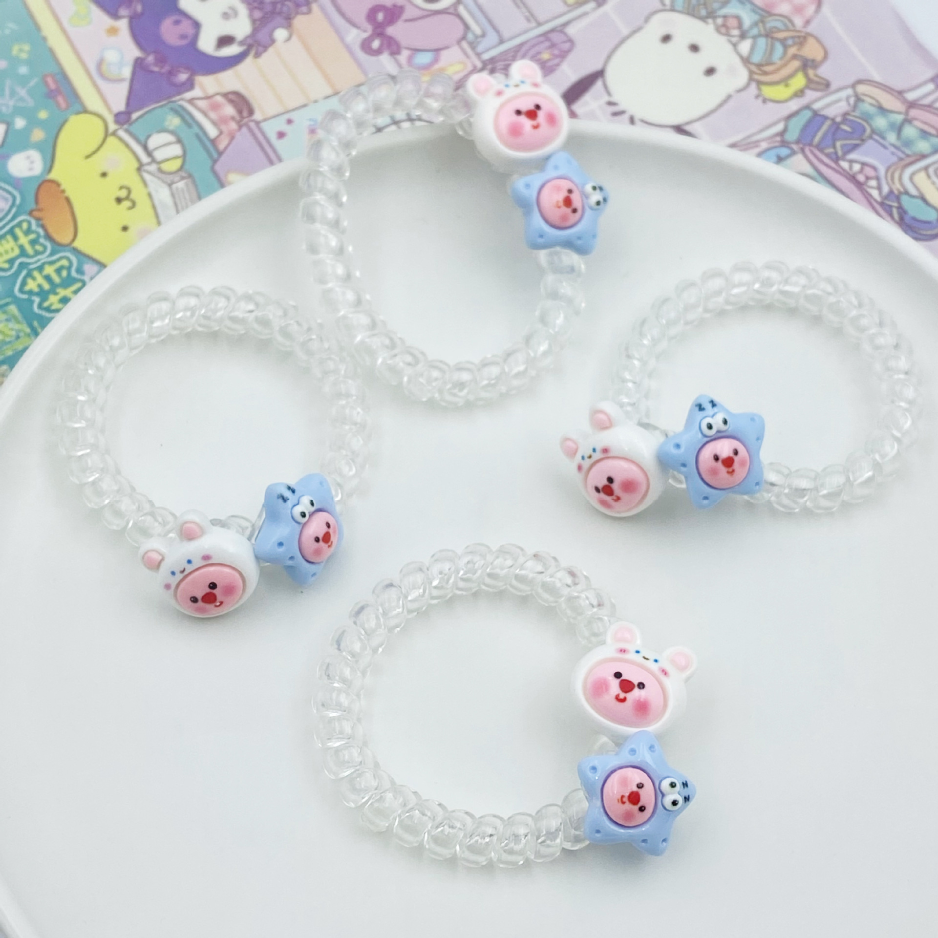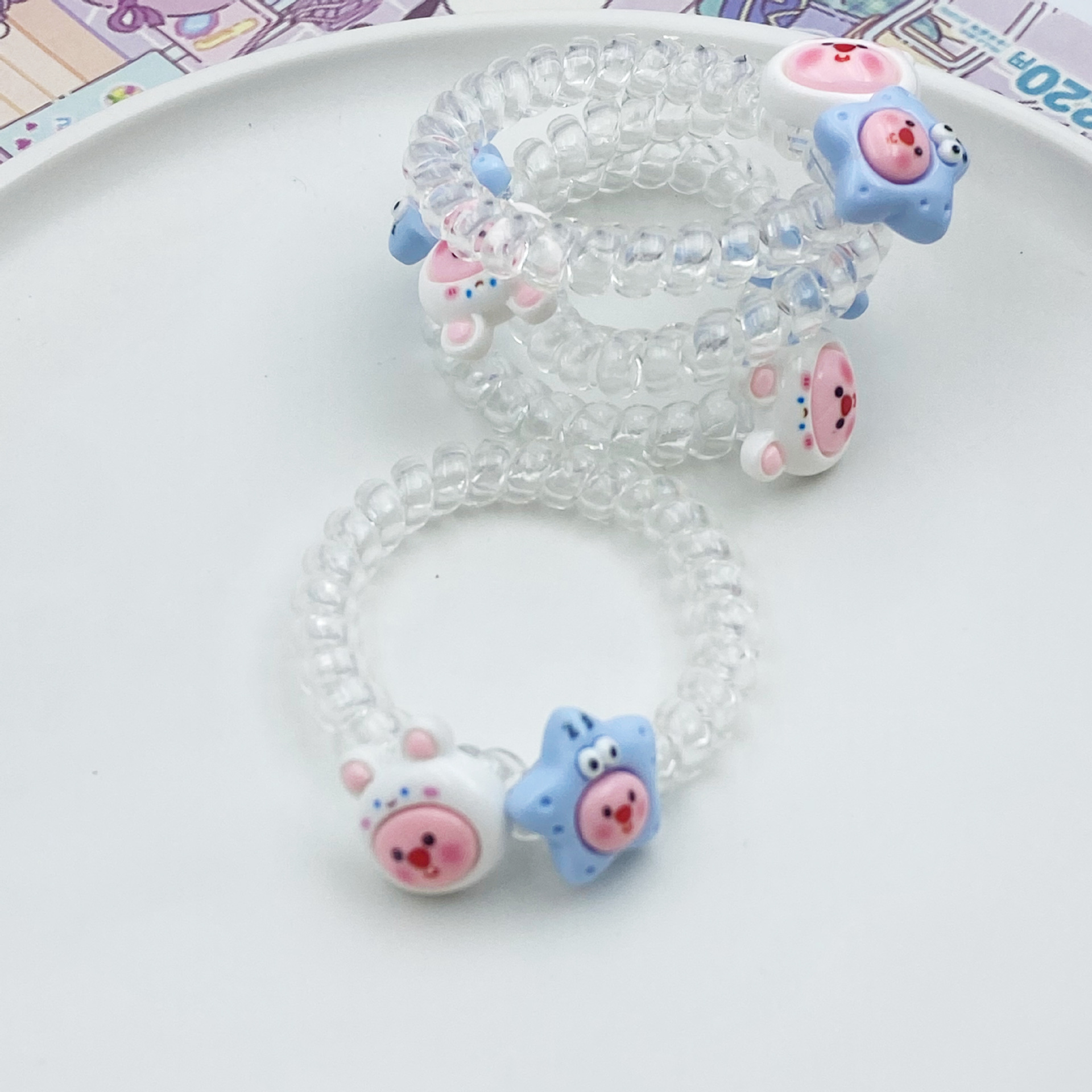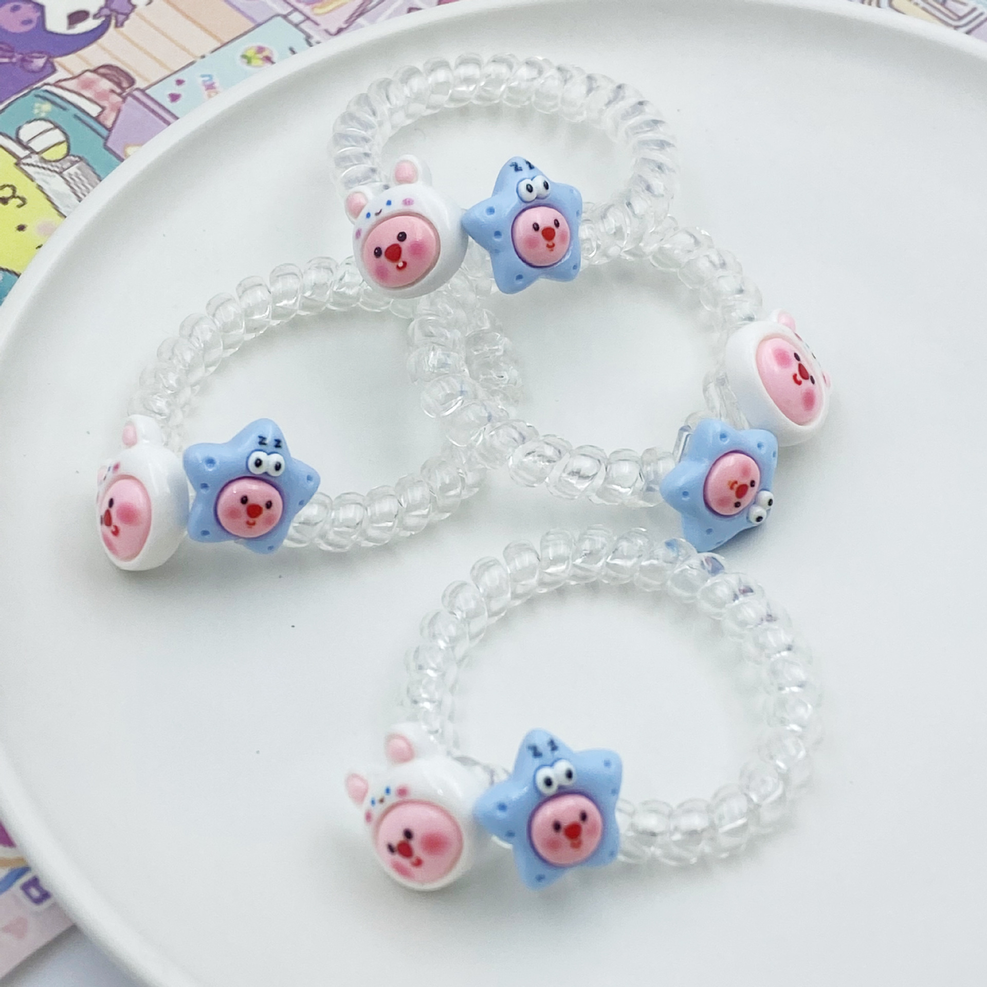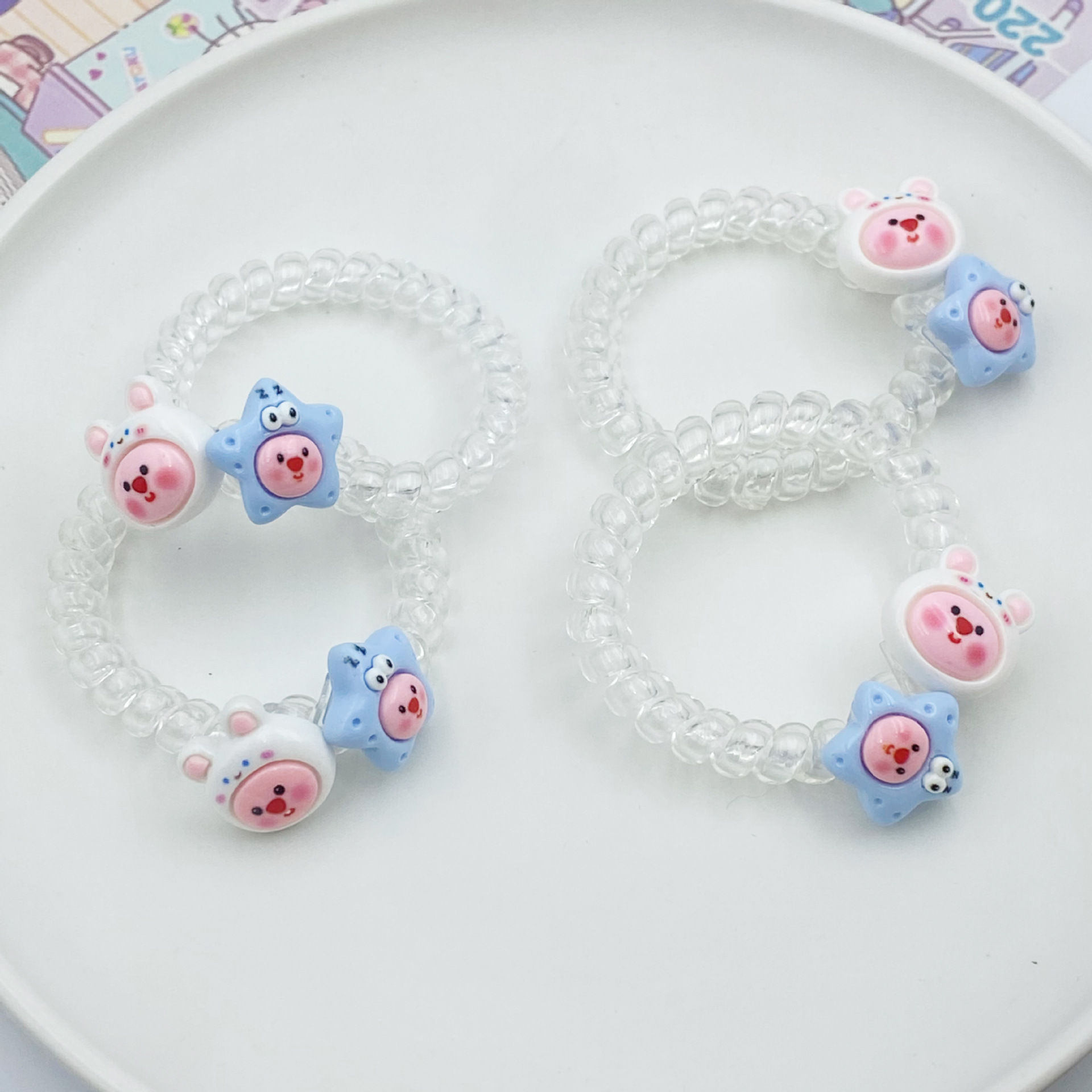 여름 신선한 투명한 전화 라인 머리 반지 루비 비버 머리 밧줄 귀여운 만화 소녀 심장 고무 텐트 학생 머리 로프스토어 가기