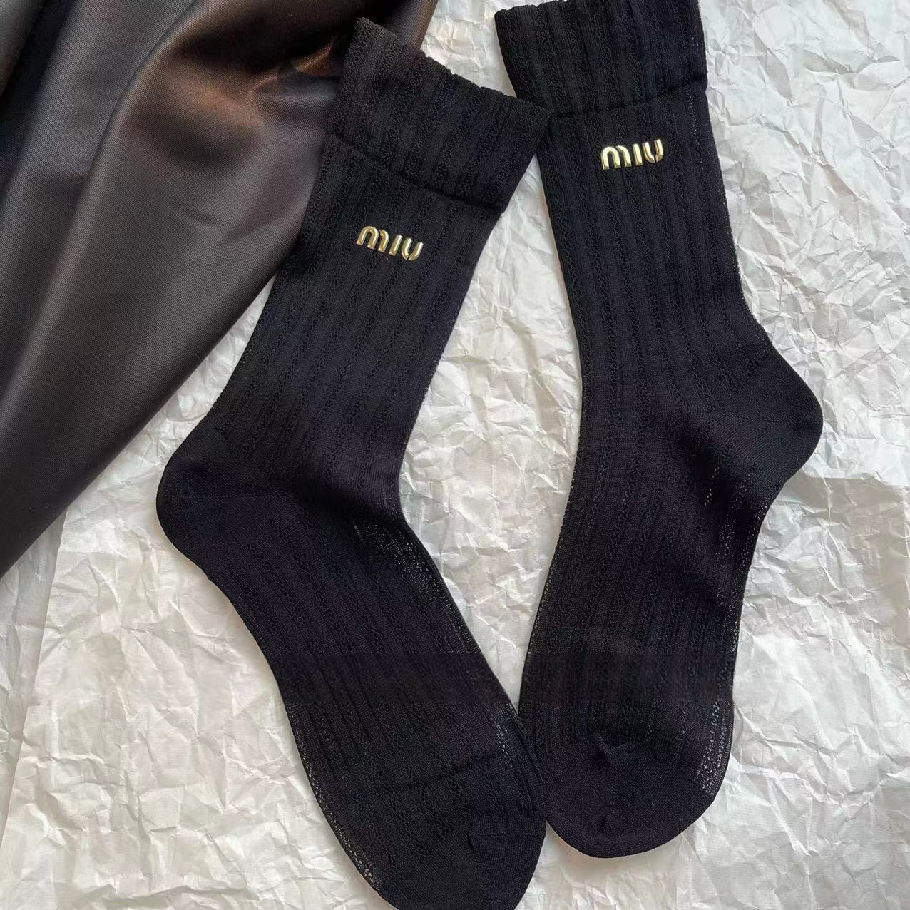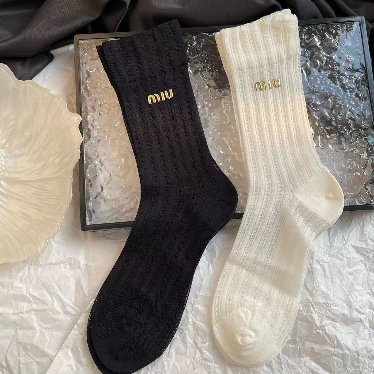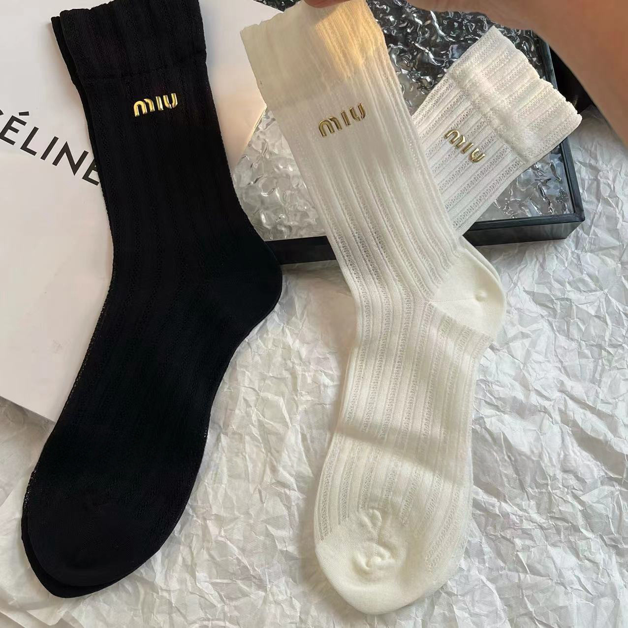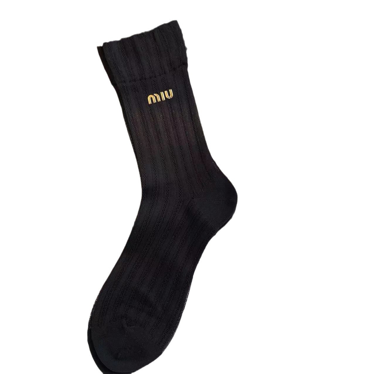 양말 여성 한국식 여름 Ins 흑백 단색 핫 스탬핑 편지 Miu 단순 올 매치 패셔너블 양말 초박형 통기성 미드 튜브