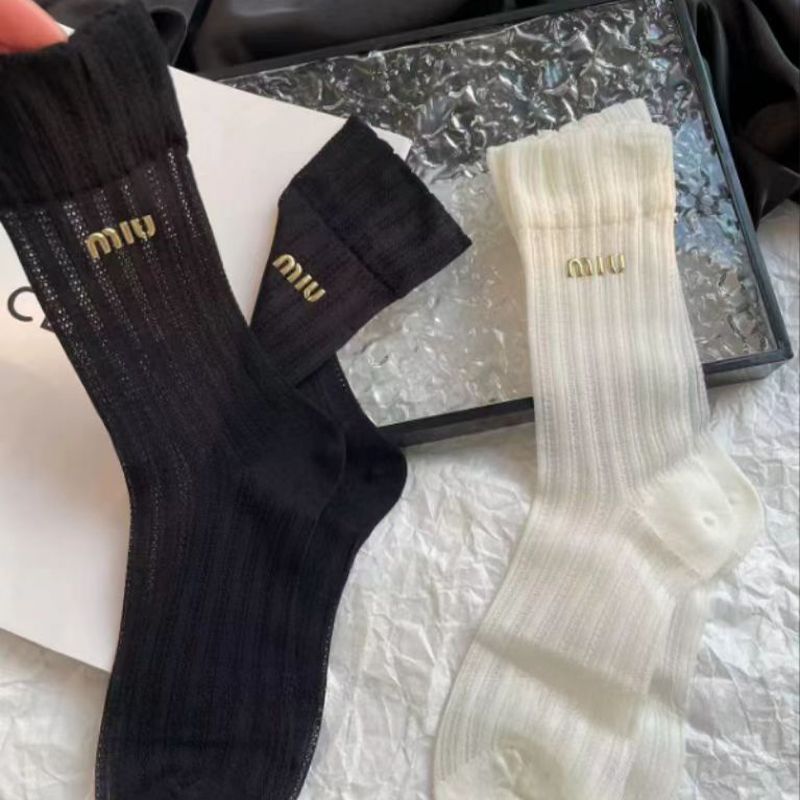 양말 여성 한국식 여름 Ins 흑백 단색 핫 스탬핑 편지 Miu 단순 올 매치 패셔너블 양말 초박형 통기성 미드 튜브스토어 가기