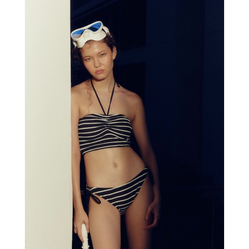 24 새로운 국경 줄무늬 분할 수영복 여성 섹시 스트랩 교수형 목 수영복 패션 레트로 비치 휴일 수영복