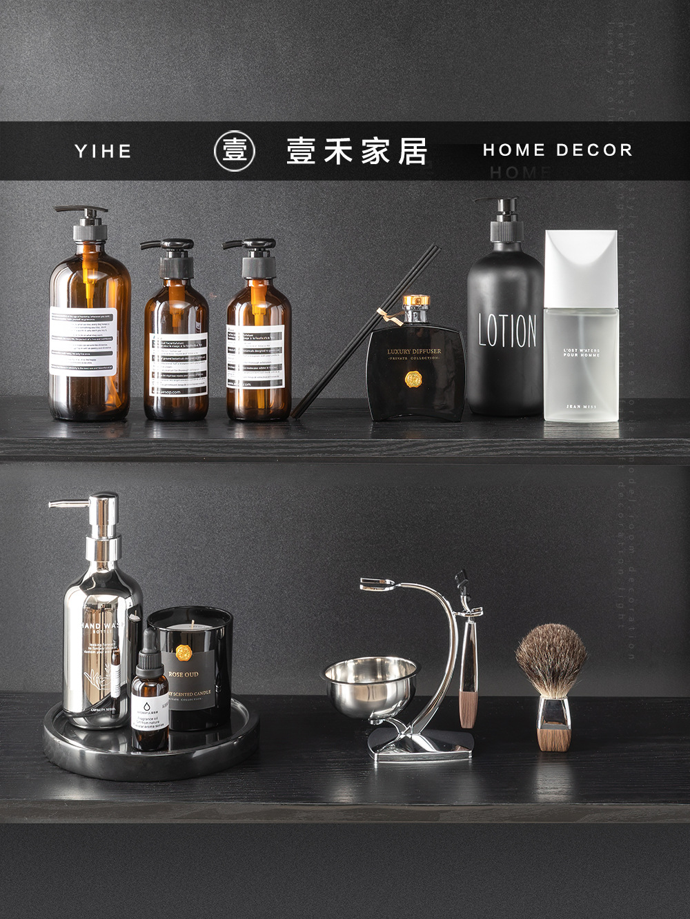 모델 룸 욕실 캐비닛 양초 아로마 테라피 보틀링 장식품 욕실 카운터 탑 트레이 조합 부드러운 장식 조합