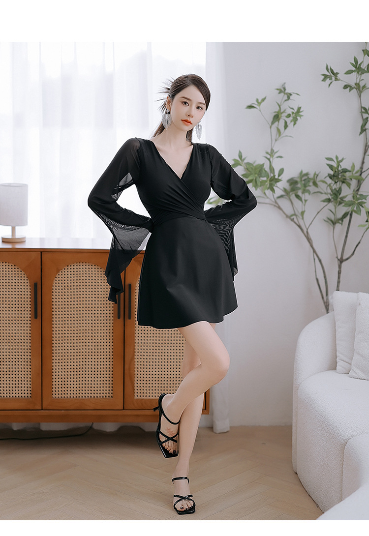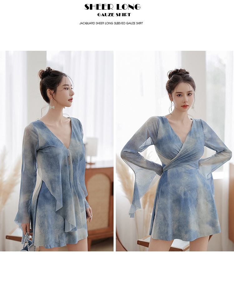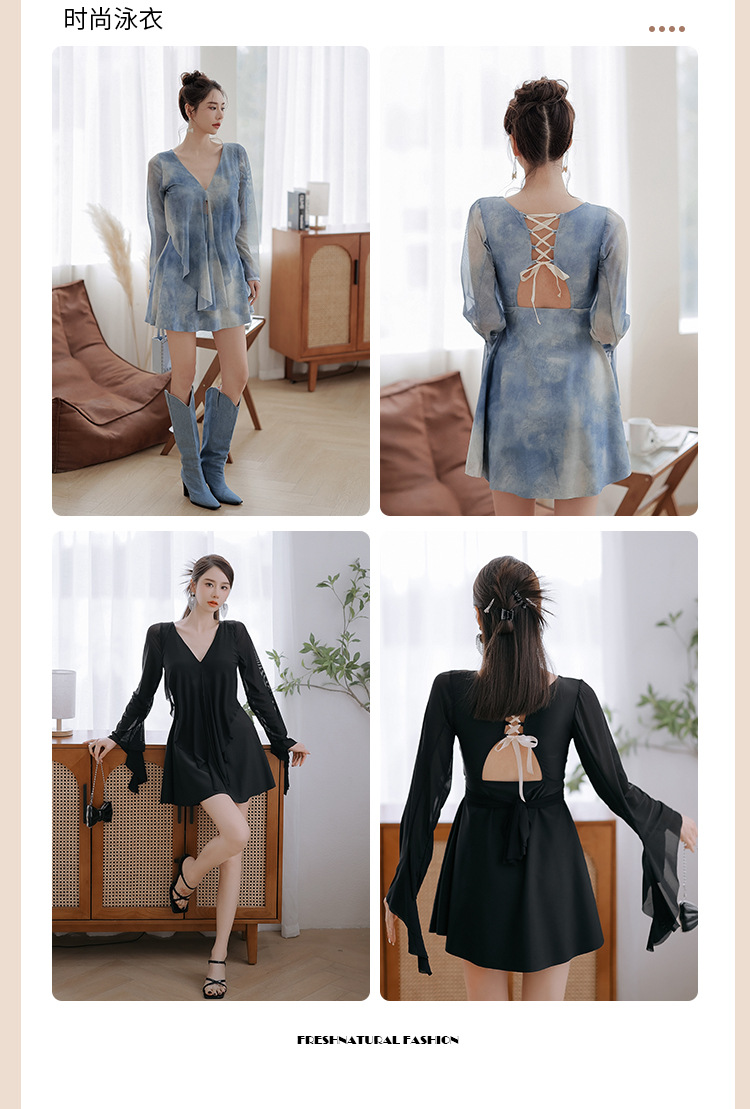 긴팔 플러스 사이즈 수영복 여성 여름 원피스 스커트 팔로 덮인 레이스 업 아름다운 등 보수적 인 틈새 어머니 온천 수영복스토어 가기