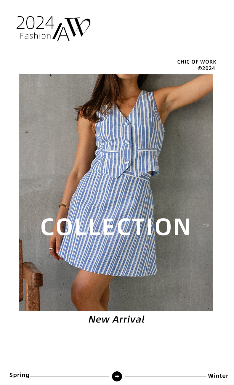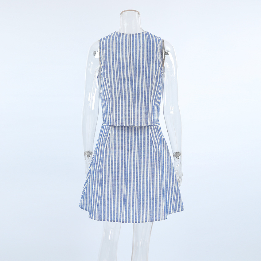 슬림핏 슬리밍 여름 신선한 줄무늬 코튼 리넨 민소매 조끼 투피스 여름 유럽과 미국 세트 원피스스토어 가기