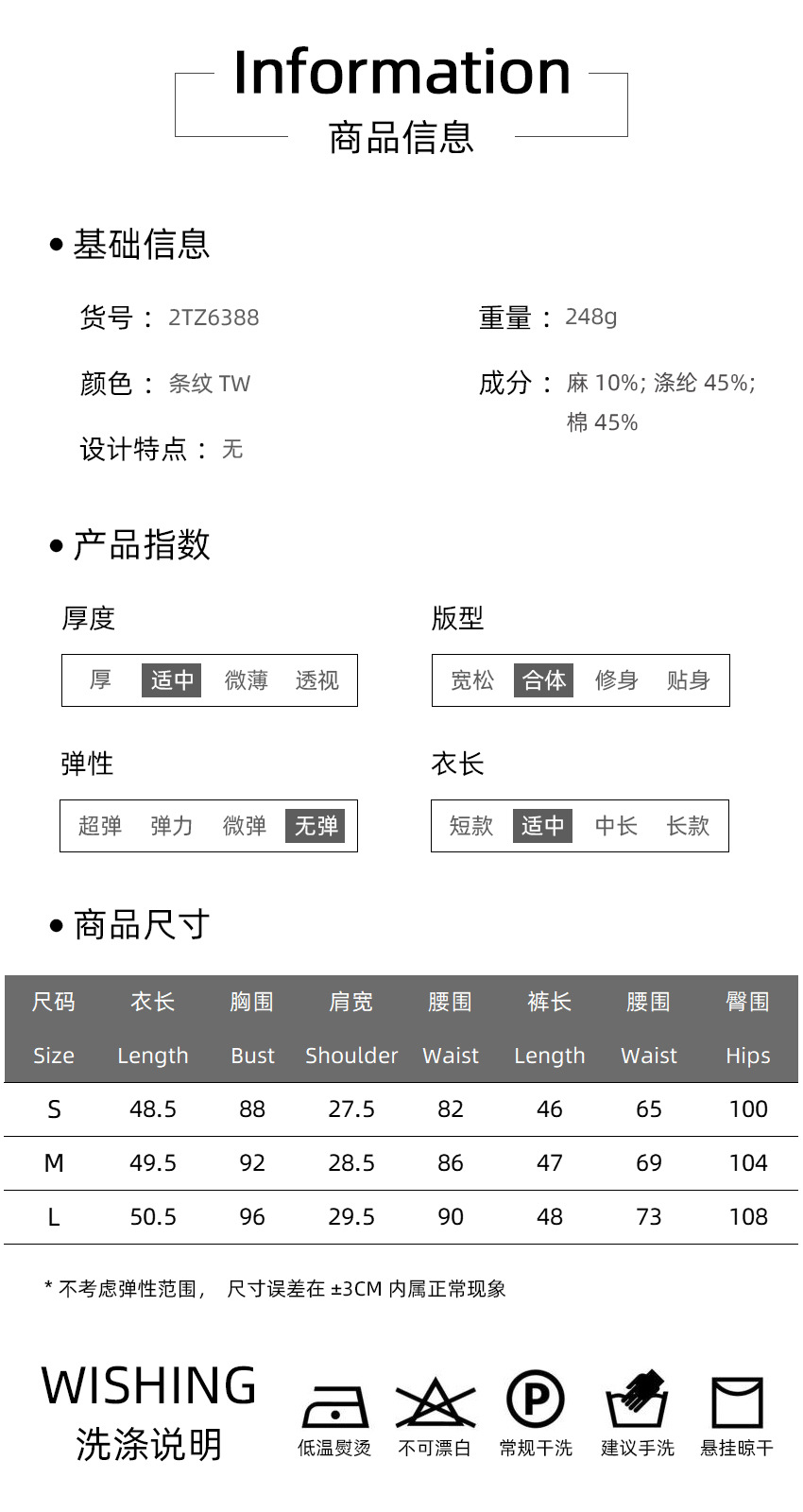 成分:麻 10%;涤纶 45%;棉 45% 重量:248g