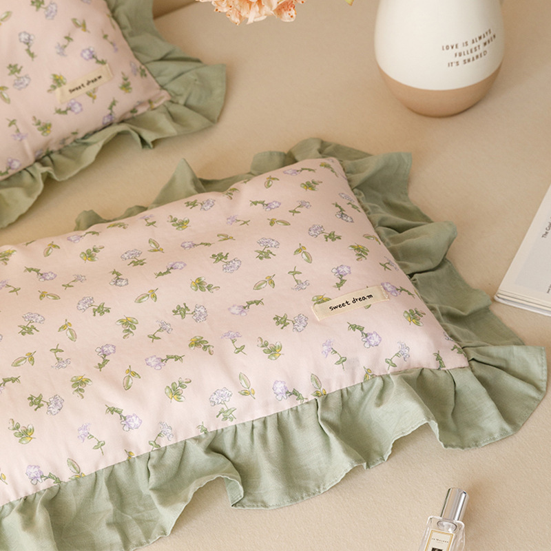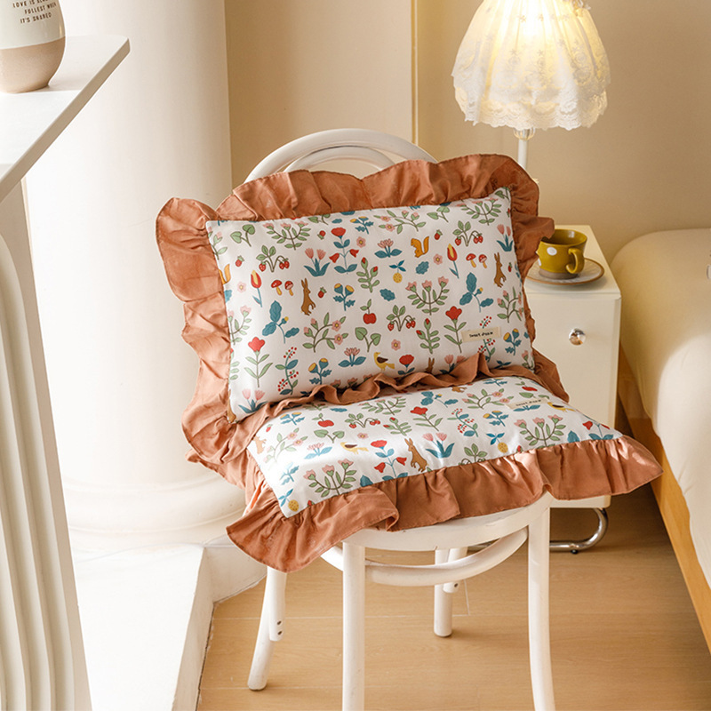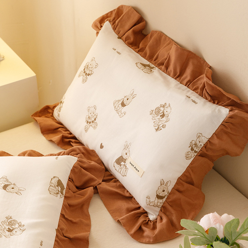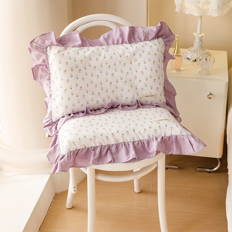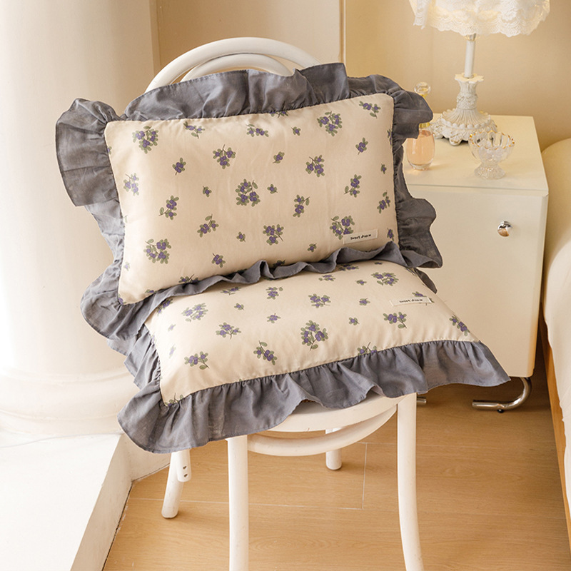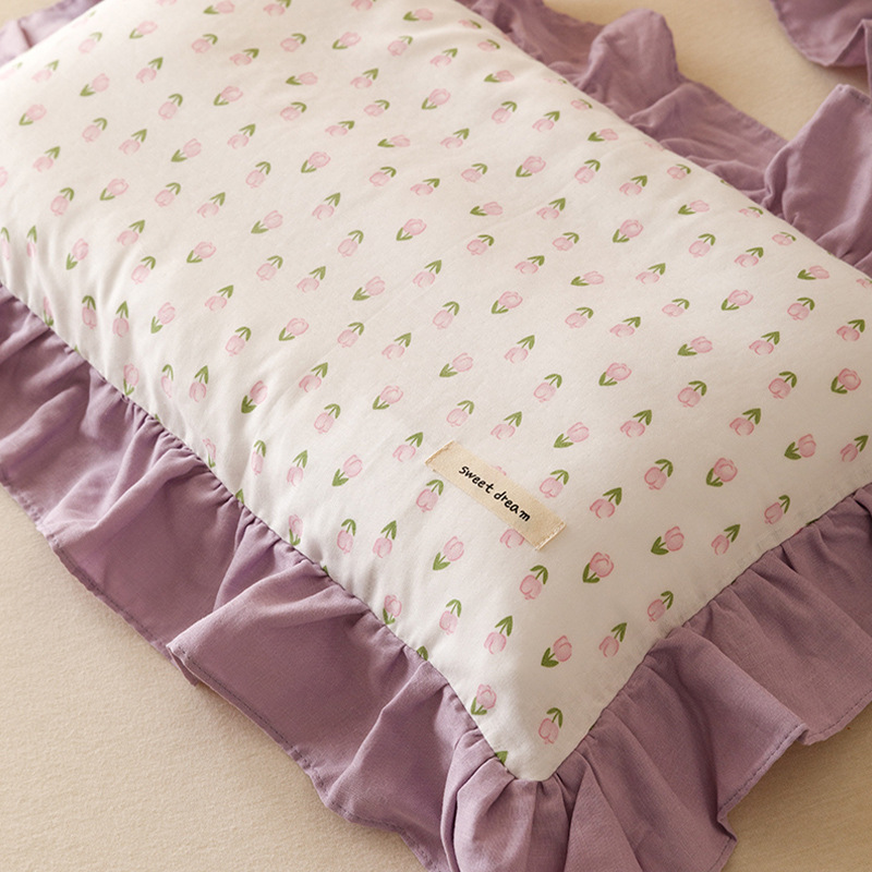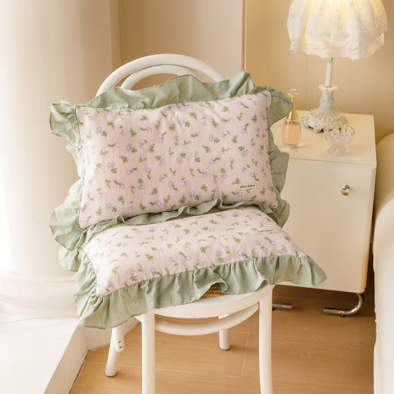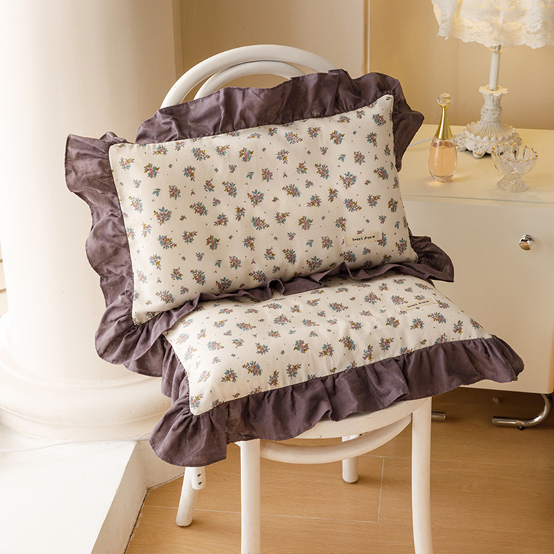 작은 꽃 만화 어린이 면 베개 클래스 면화 이중층 원사 레이스 성인용 작은 신선한 베개 커버