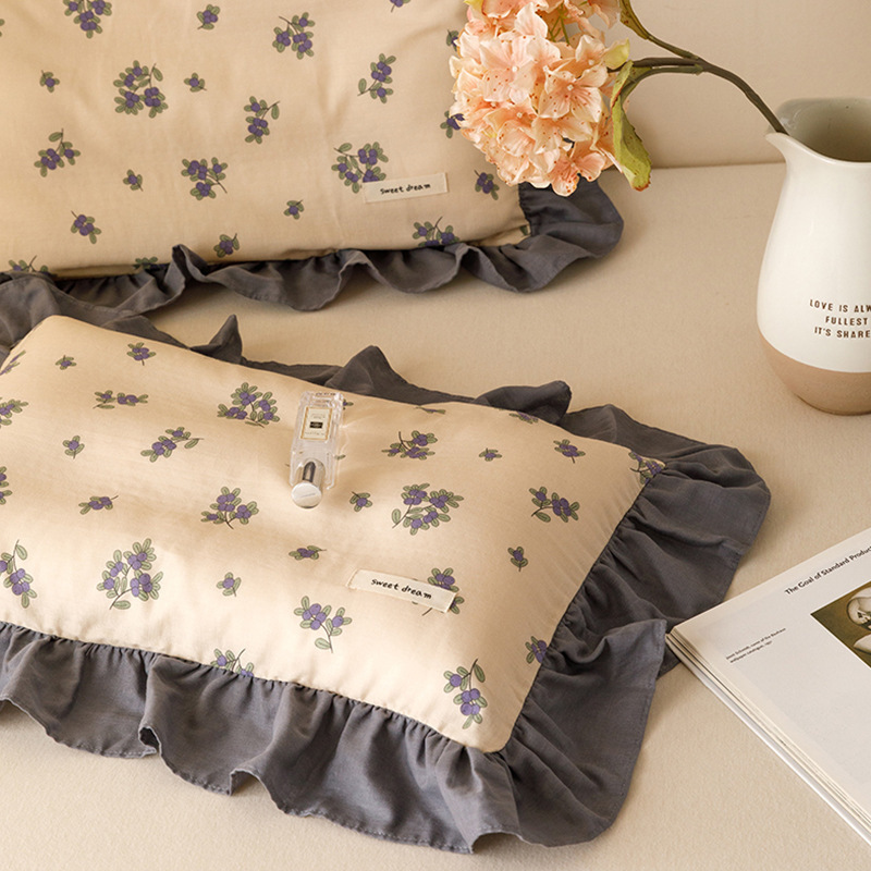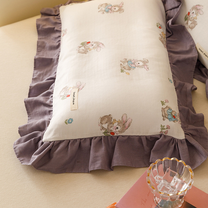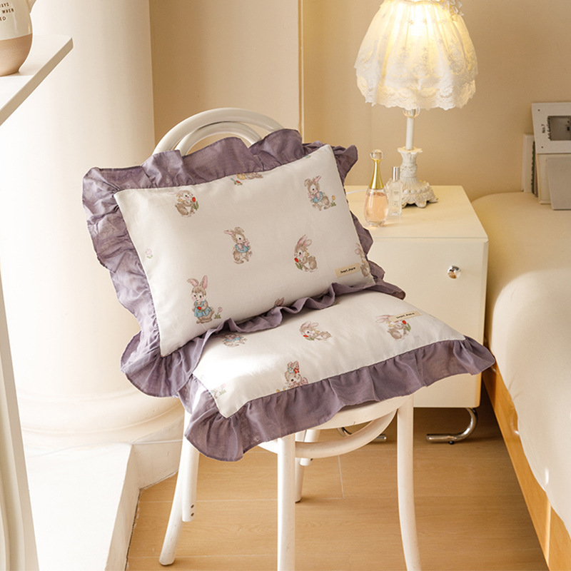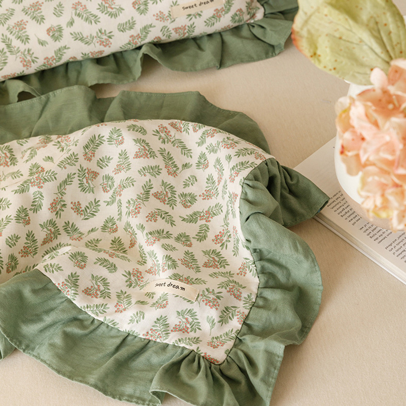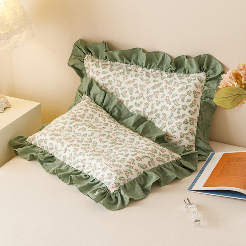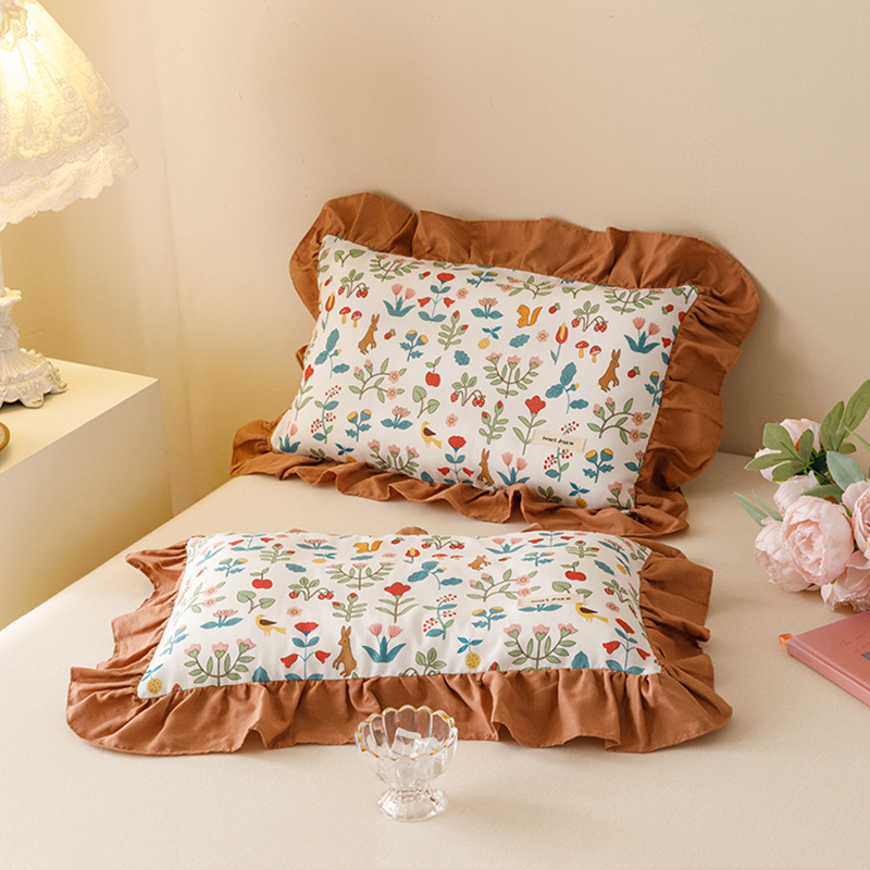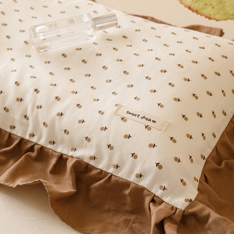 작은 꽃 만화 어린이 면 베개 클래스 면화 이중층 원사 레이스 성인용 작은 신선한 베개 커버