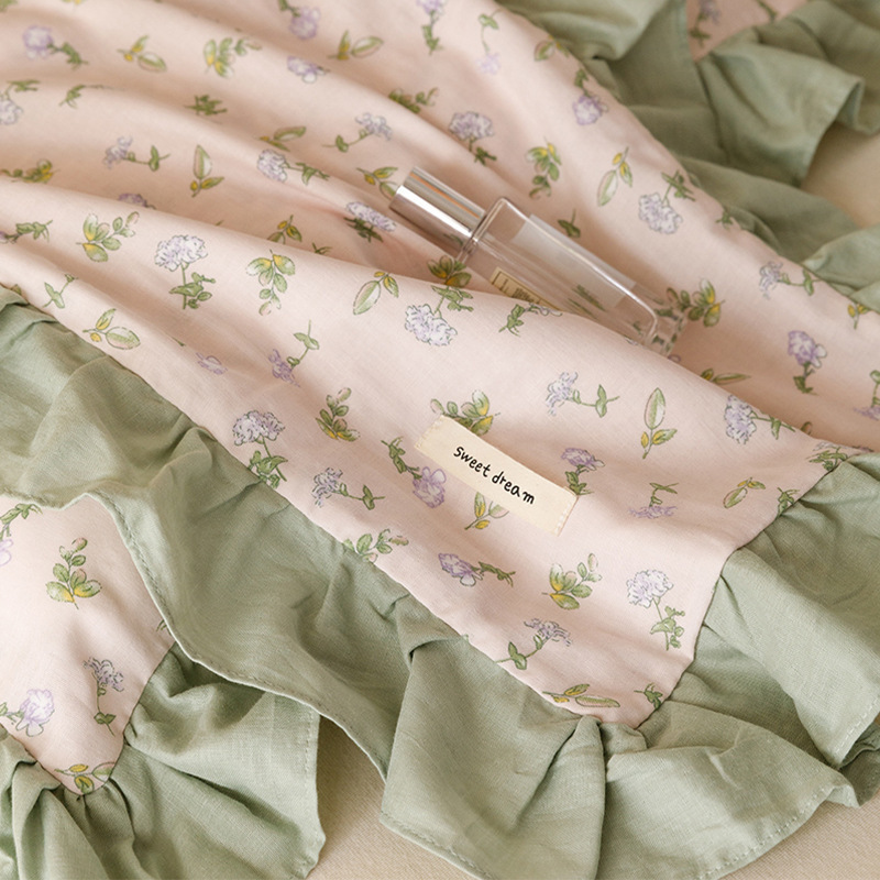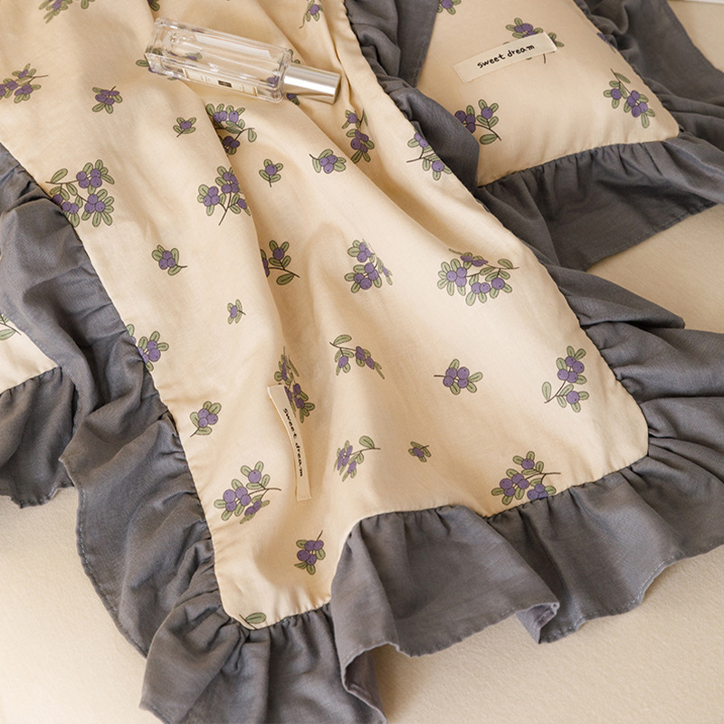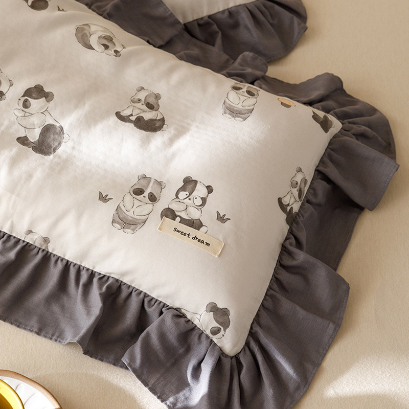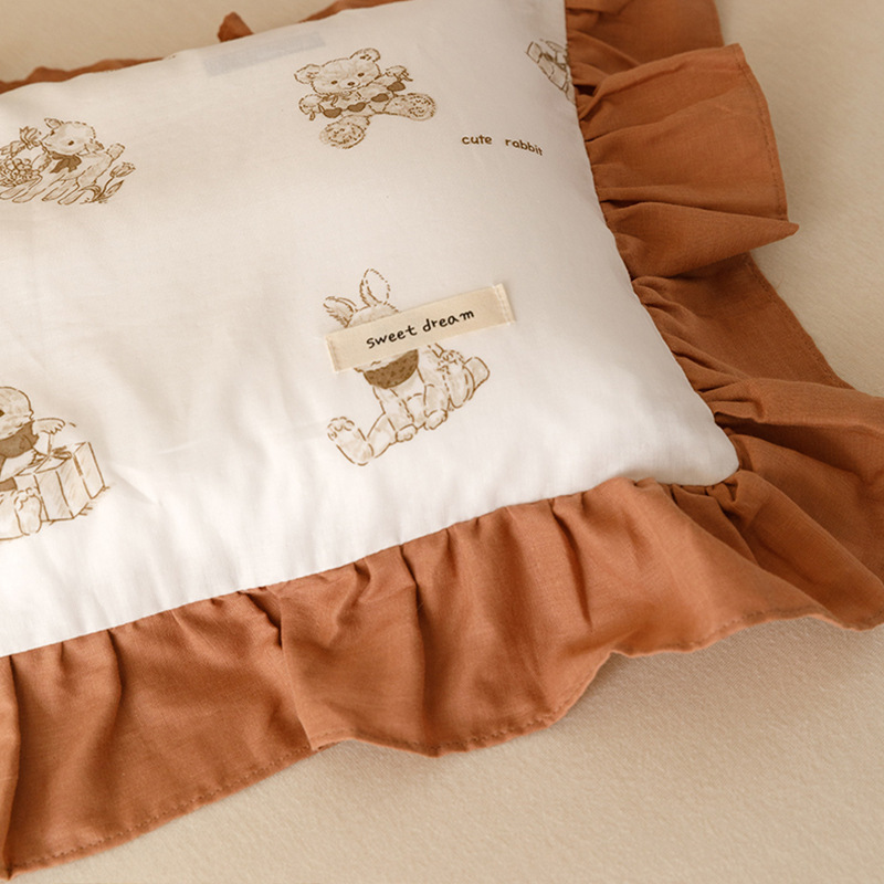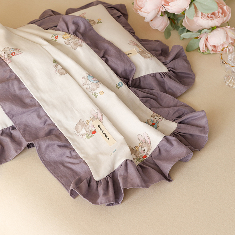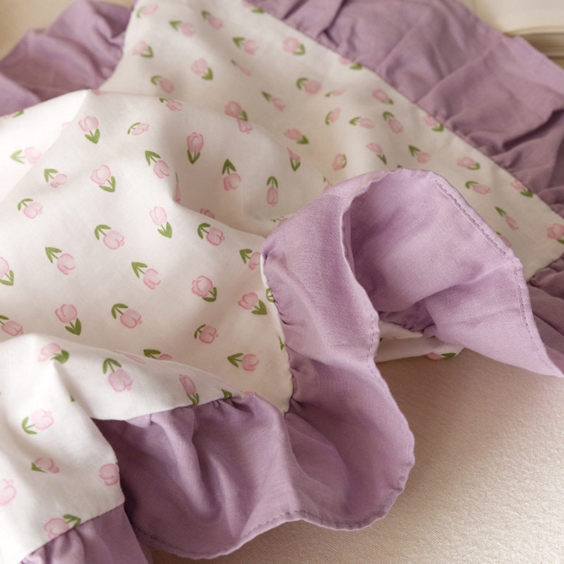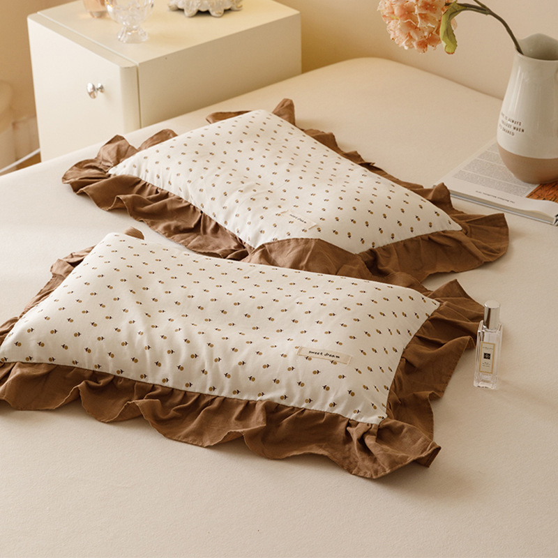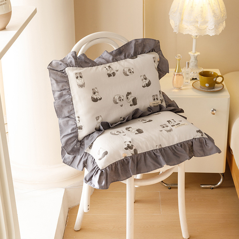 작은 꽃 만화 어린이 면 베개 클래스 면화 이중층 원사 레이스 성인용 작은 신선한 베개 커버