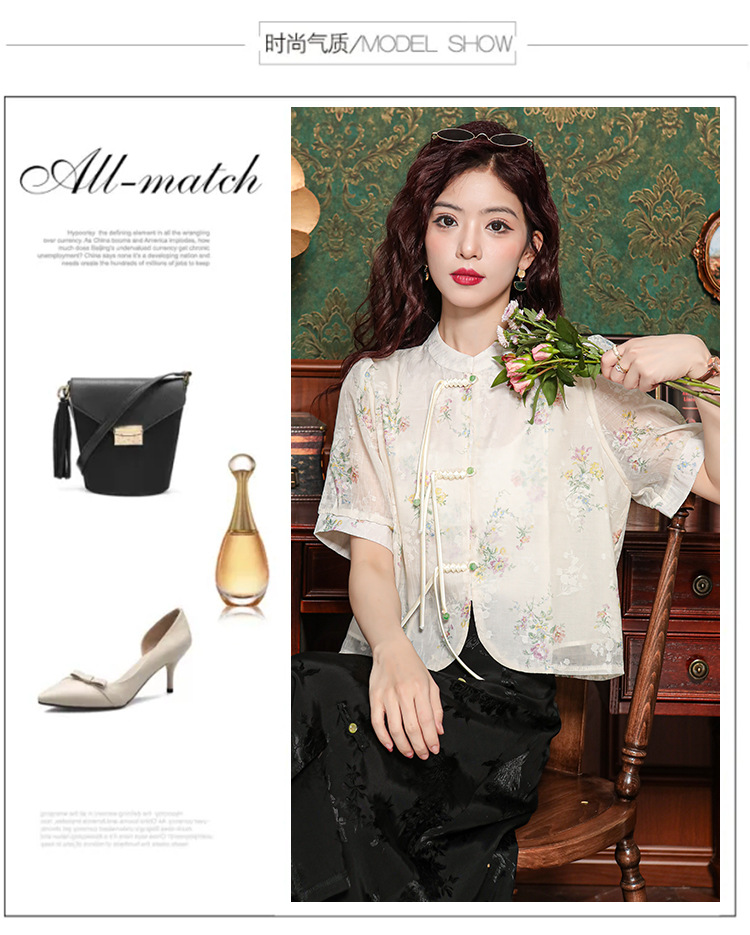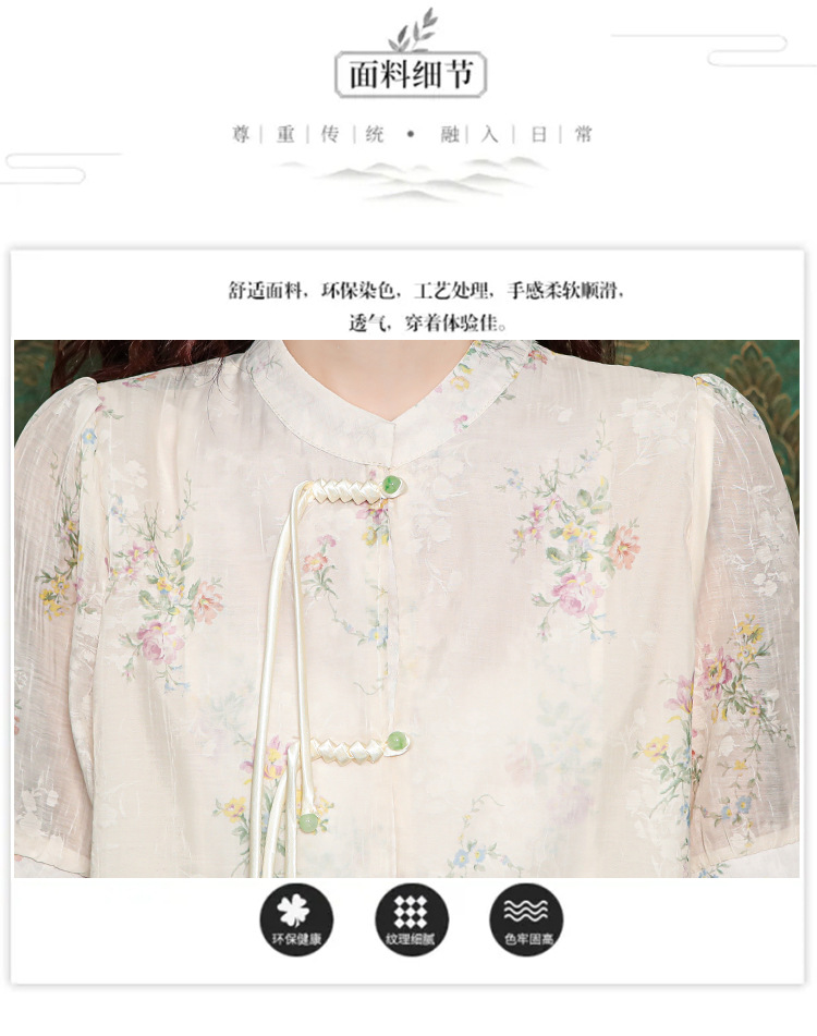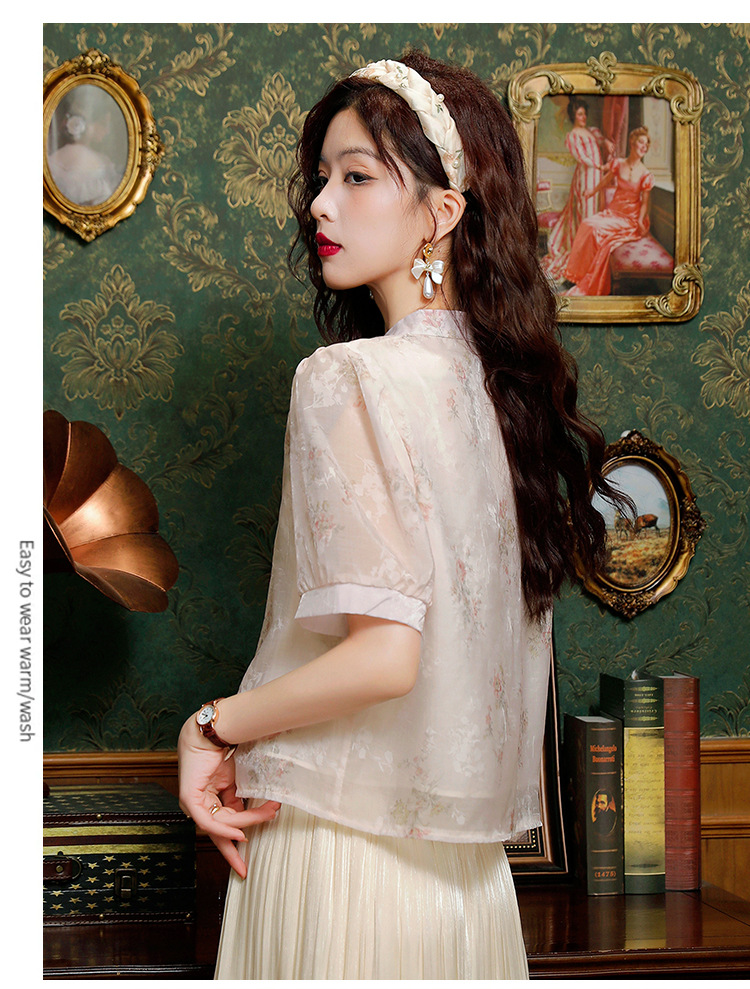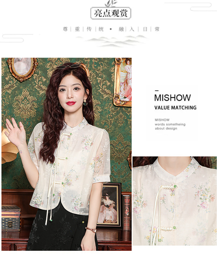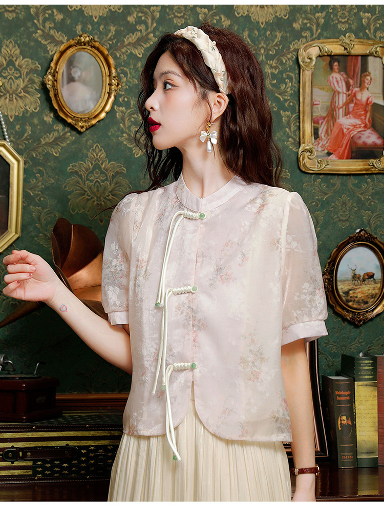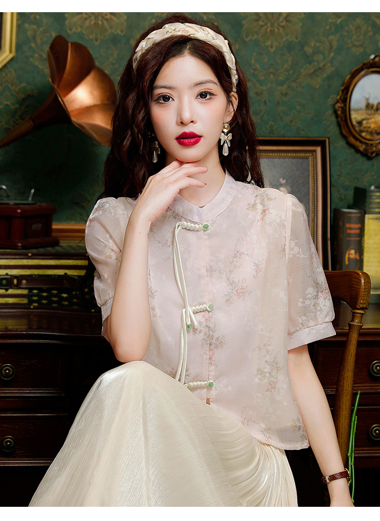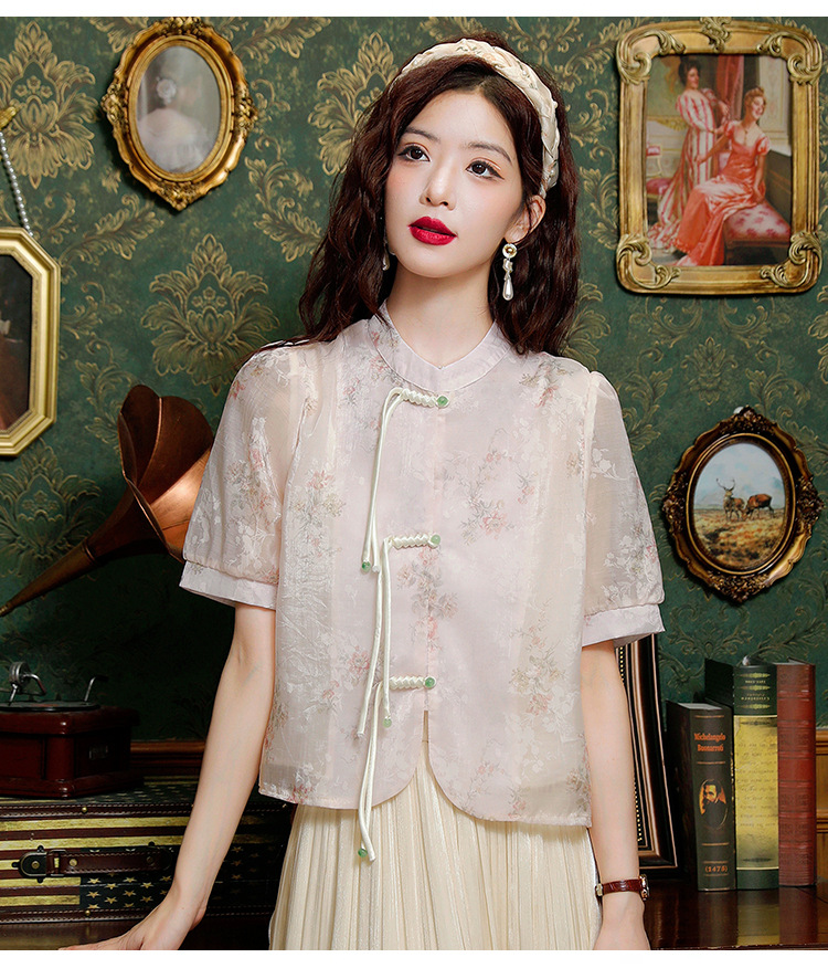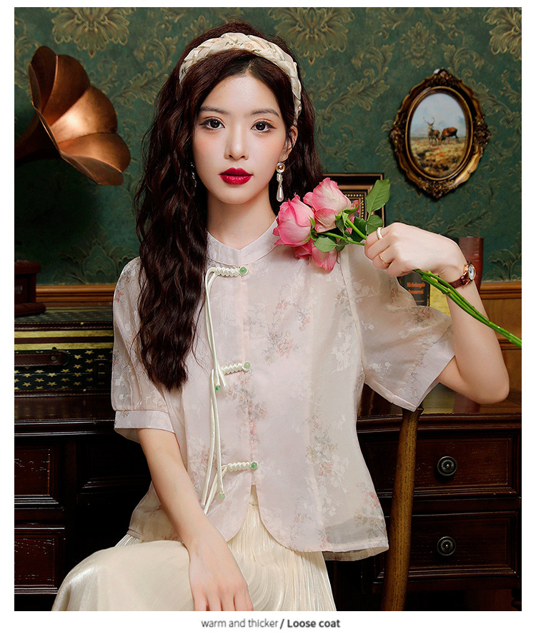 새로운 중국 스타일 버클 꽃 셔츠 반팔 여성용 2024 여름 새로운 디자인 센스 롱 레트로 셔츠 탑스토어 가기