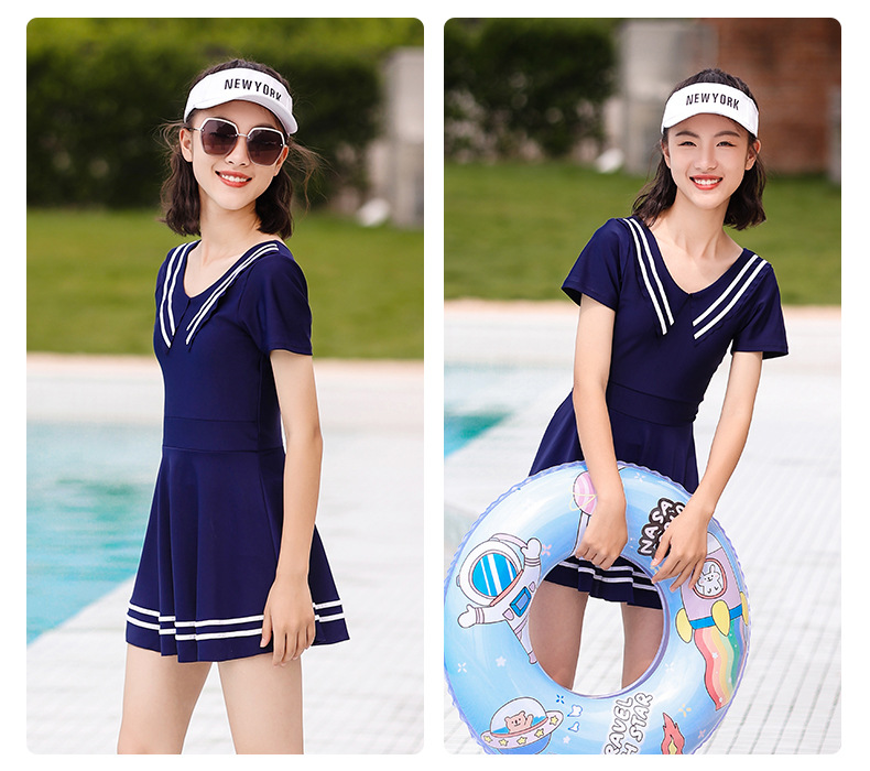 어린이 수영복 새로운 달콤한 스타일 소녀 대학 스타일 원피스 스커트 썬 스크린 수영복 중대형 어린이와 학생을위한 빠른 건조 수영복