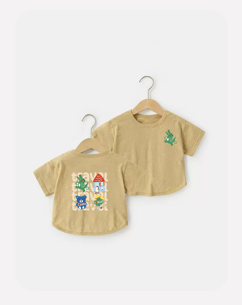 여름 만화 반팔 반바지 세트 어린이 올매치 캐주얼 탑 데님 세트 한국 티셔츠 투피스 세트