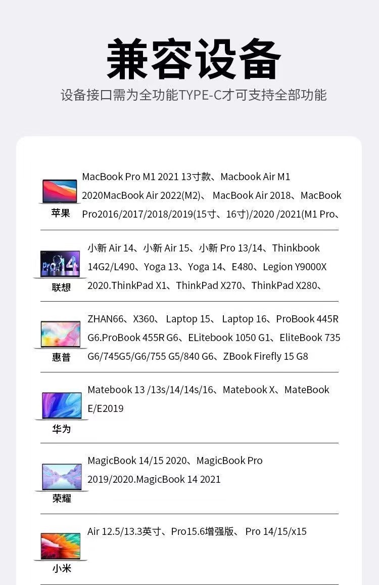 规格:pd100w+hdmi4k30hz+USB2.0+USB2.0+SD/TF