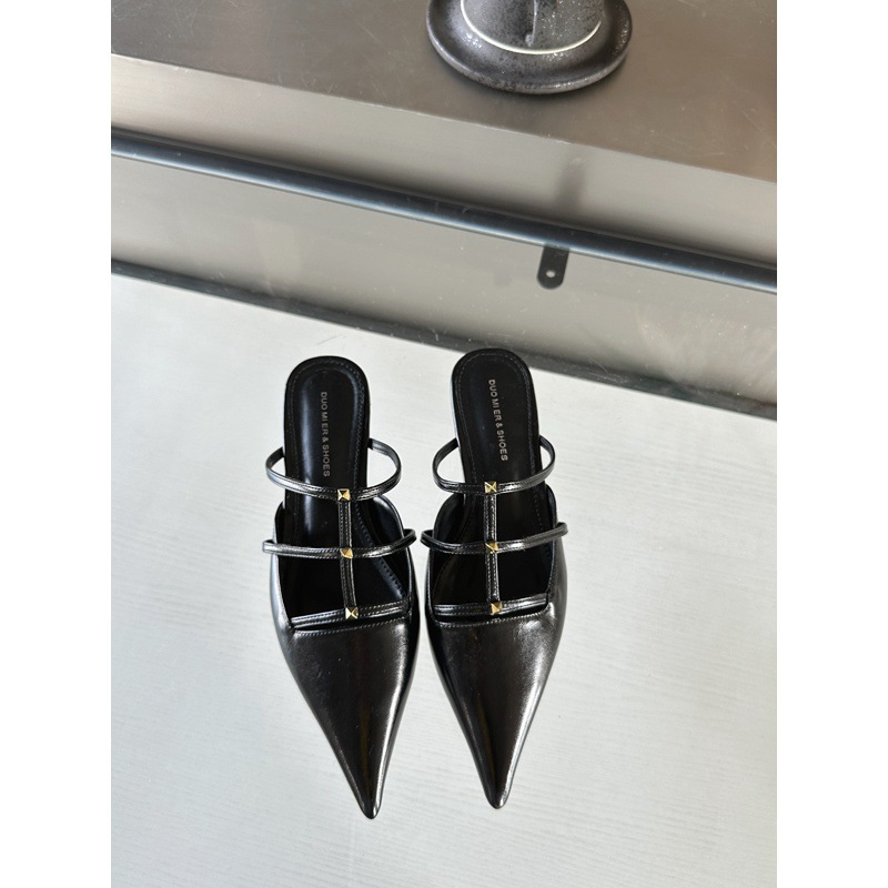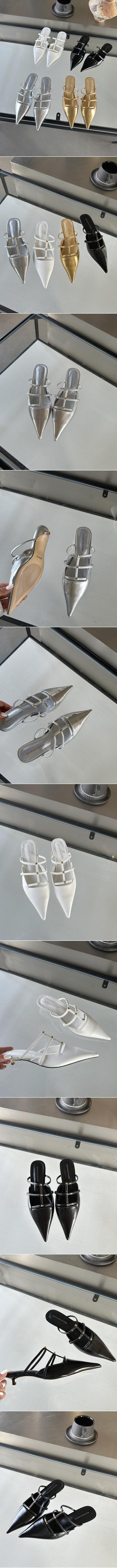 봄과 가을 2024 새로운 패션 프랑스 스타일 Liu Ding Baotou 슬리퍼 크로스 얇은 벨트 미드 힐 슬리퍼 로우 힐 샌들스토어 가기