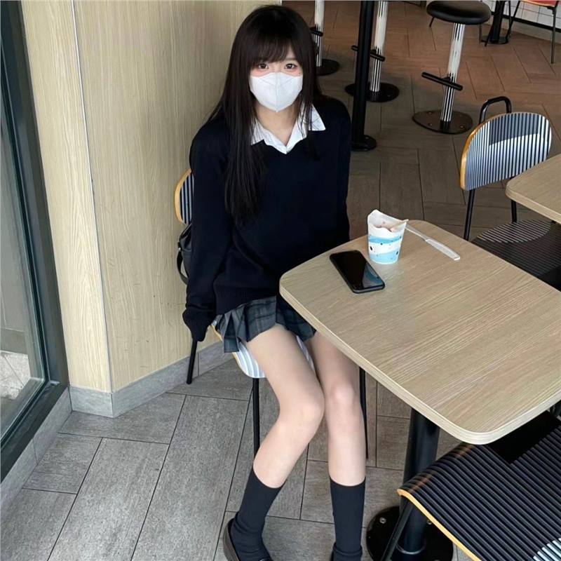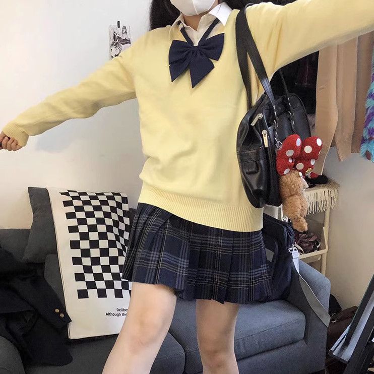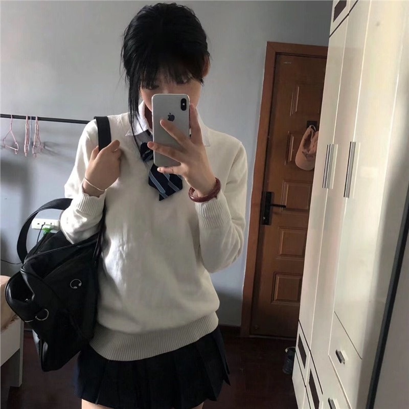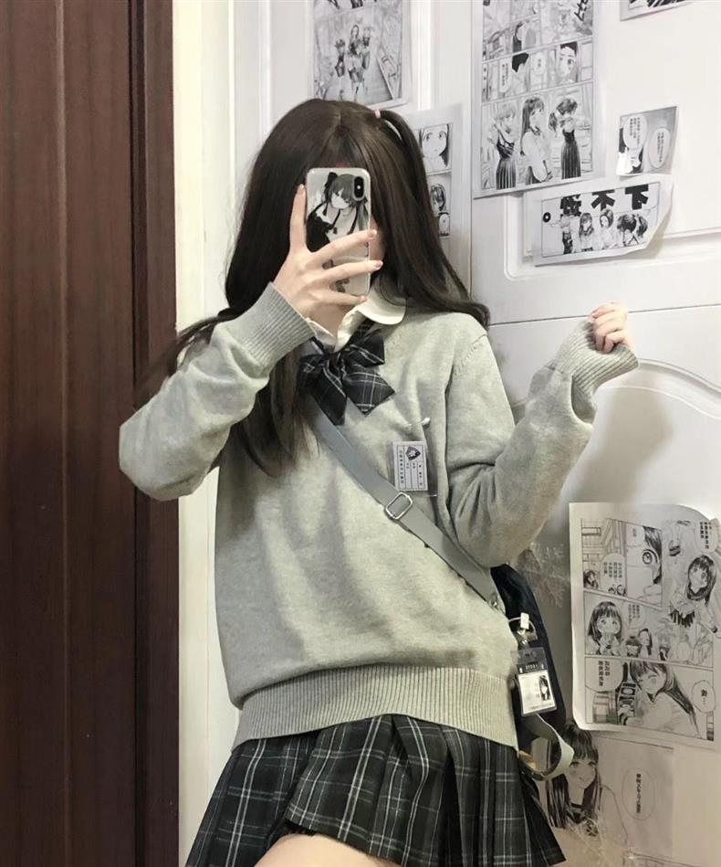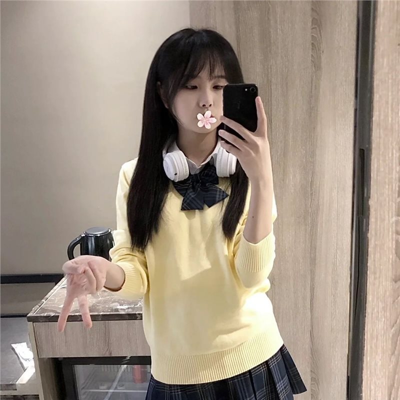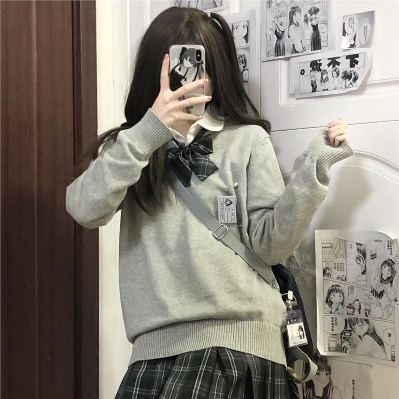 아카데미 스타일 가을과 겨울 새로운 JK 유니폼 스웨터 풀오버 V-넥 롱 슬리브 올 매치 소녀 부드러운 소녀 외부 니트 스웨터
