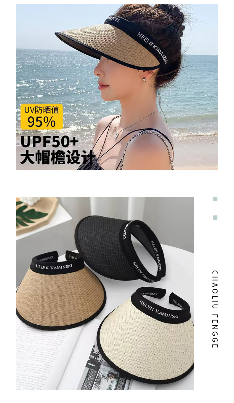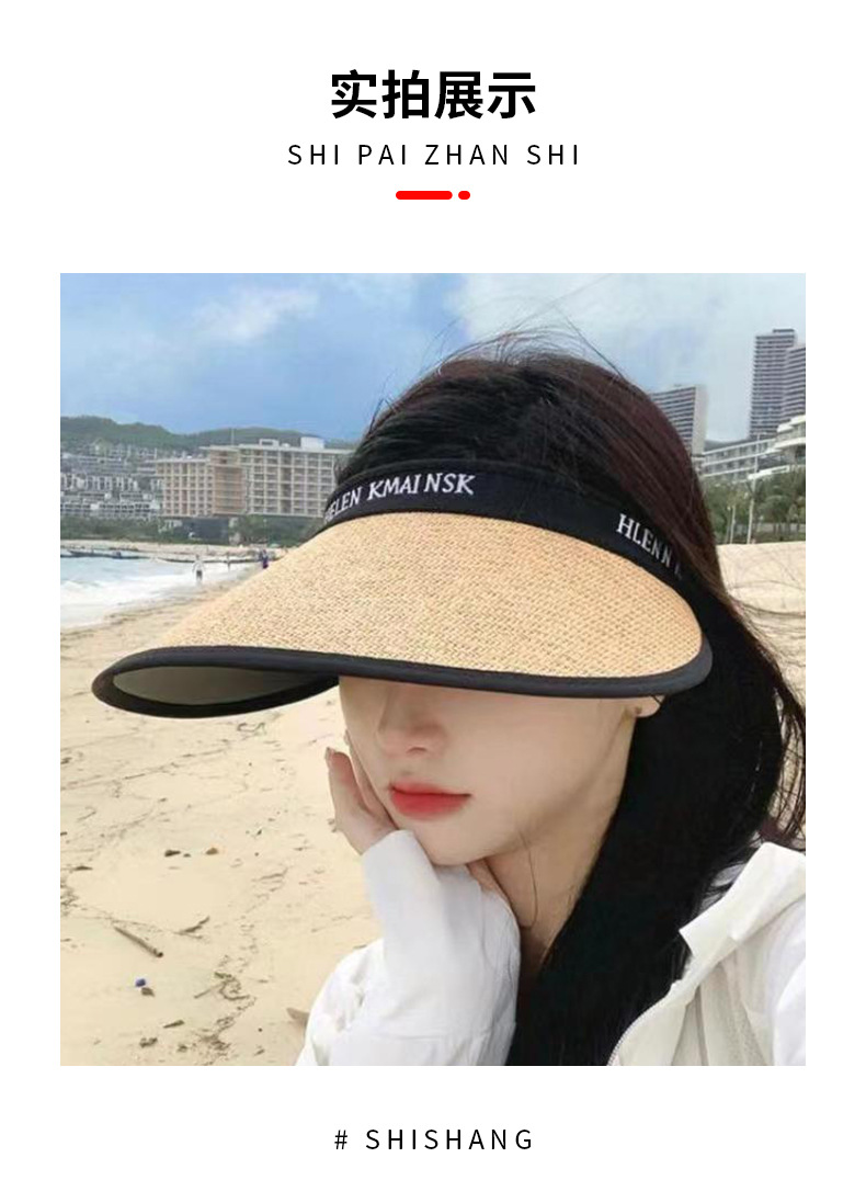 검은 고무 선 스크린 모자 태양 모자 여성의 여름 반 UV 얼굴을 가리는 차양 모자 대형 브림 빈 탑 모자 밀짚 모자스토어 가기