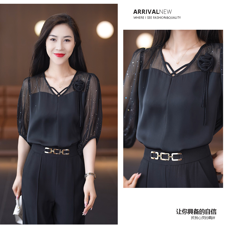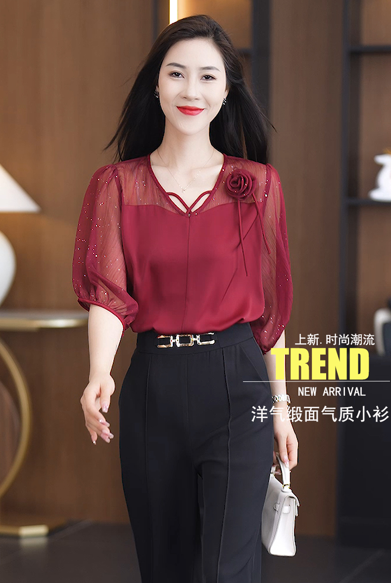 여성 쉬폰 셔츠 2021 새로운 스타일 올해 인기 패션 여름 연령 감소 슬리밍 셔츠 서양식 아름다운 탑스토어 가기