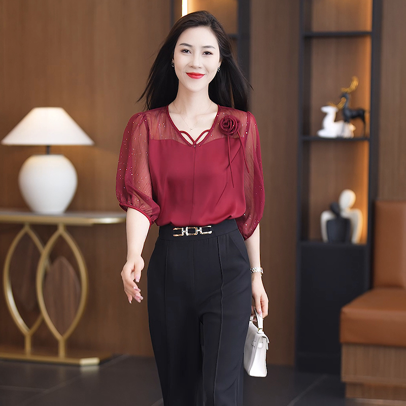 여성 쉬폰 셔츠 2021 새로운 스타일 올해 인기 패션 여름 연령 감소 슬리밍 셔츠 서양식 아름다운 탑