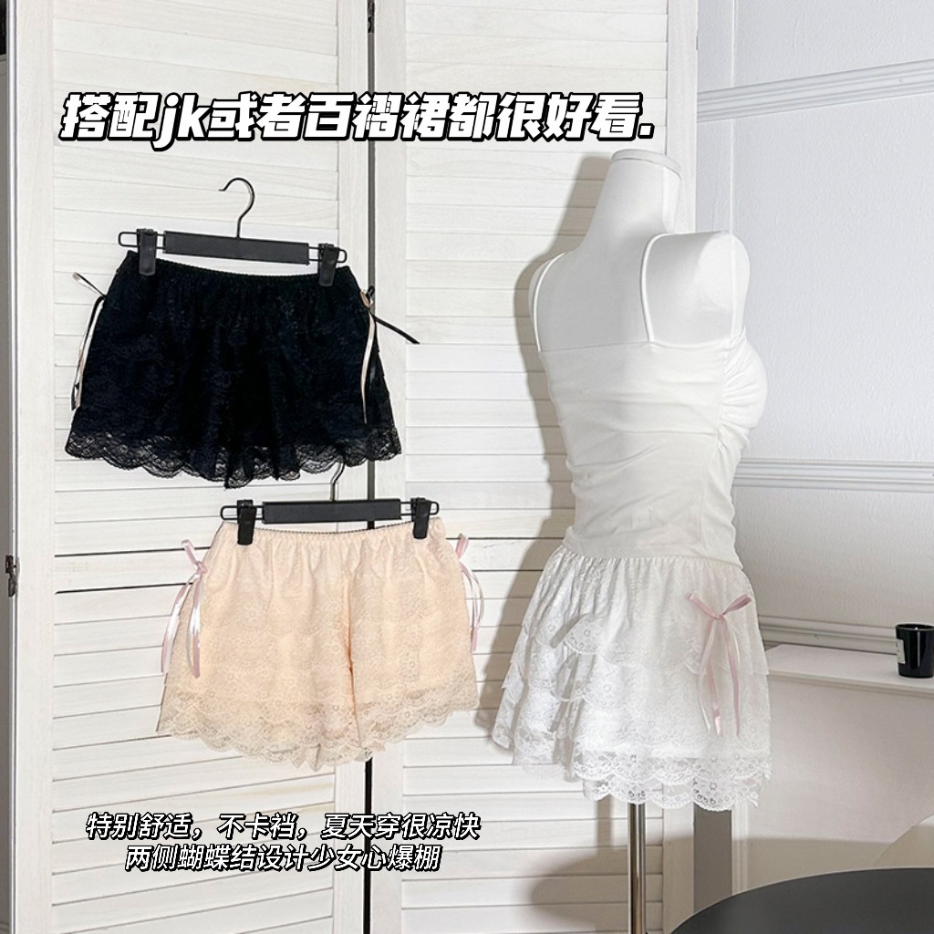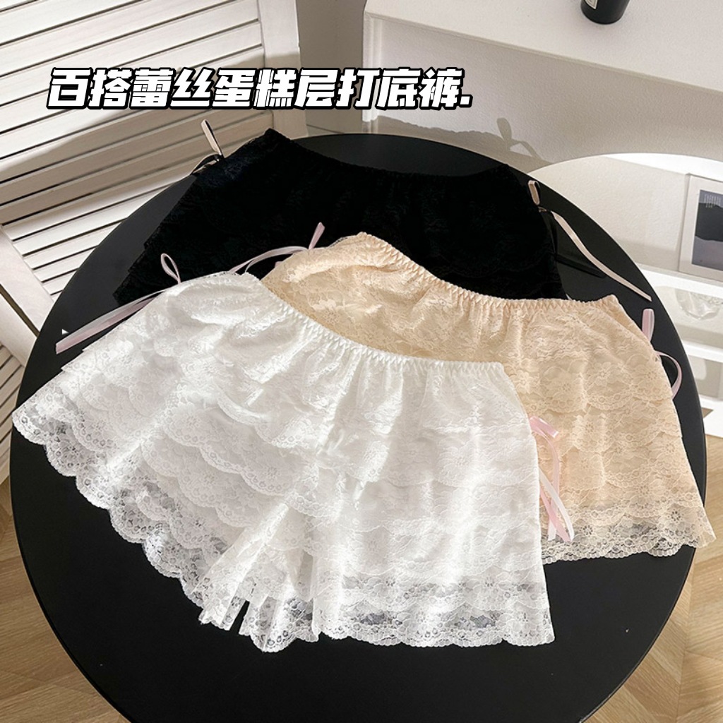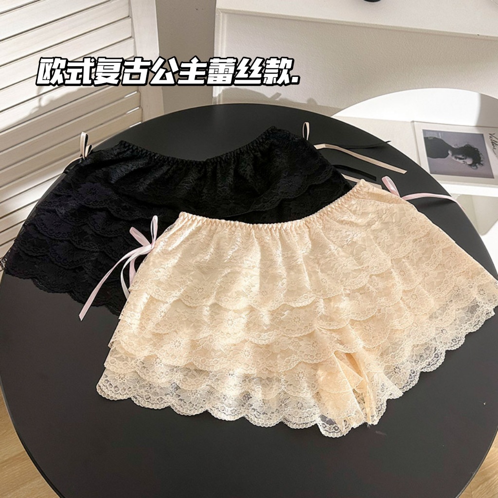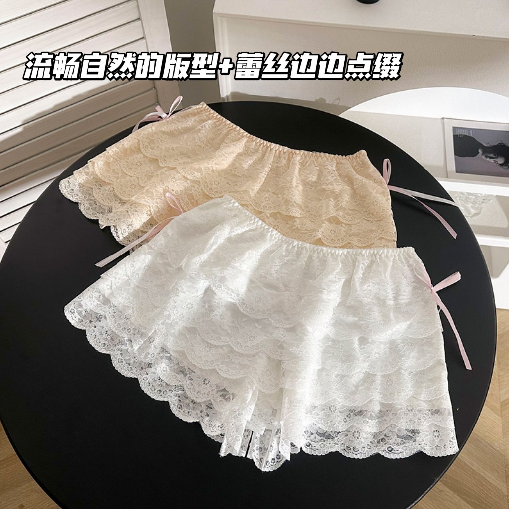 케이크 레이어 섹시한 레이스 중간 허리 안전 바지 여성의 여름 얇은 컬링되지 않은 플러스 사이즈 레깅스 순수 안전 바지스토어 가기