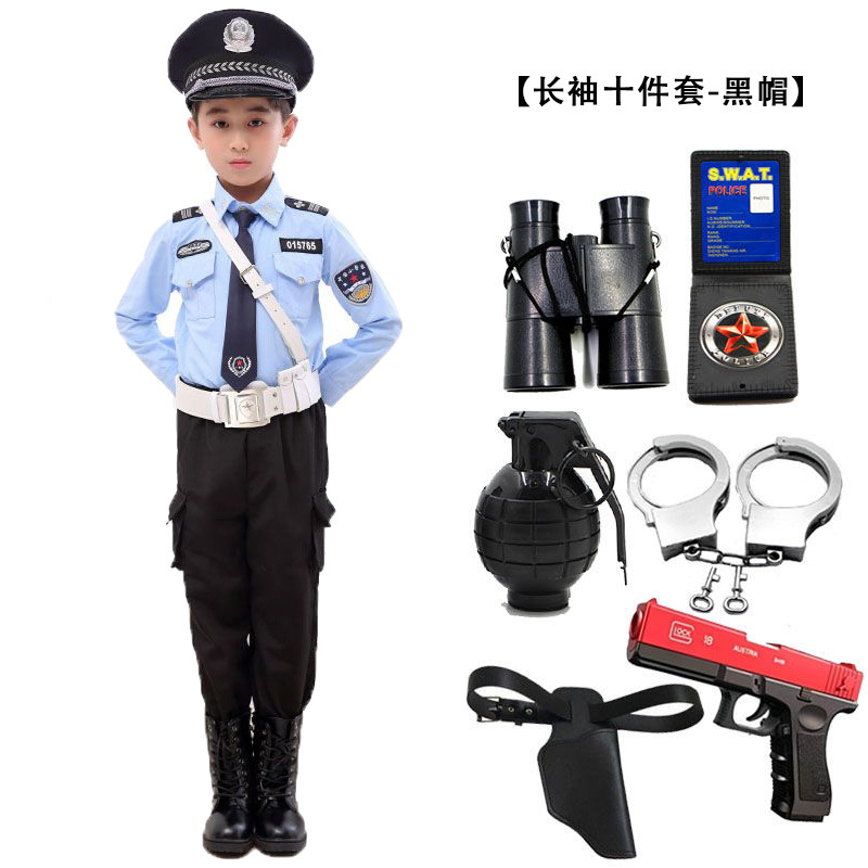 어린이 경찰 의상 소년 소녀 작은 경찰 유니폼 롤 플레잉 교통 경찰 유니폼 공공 보안 교통 유니폼 장비 도매