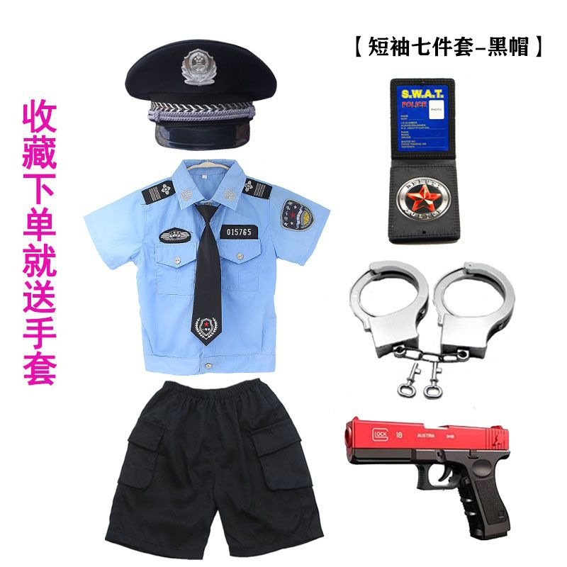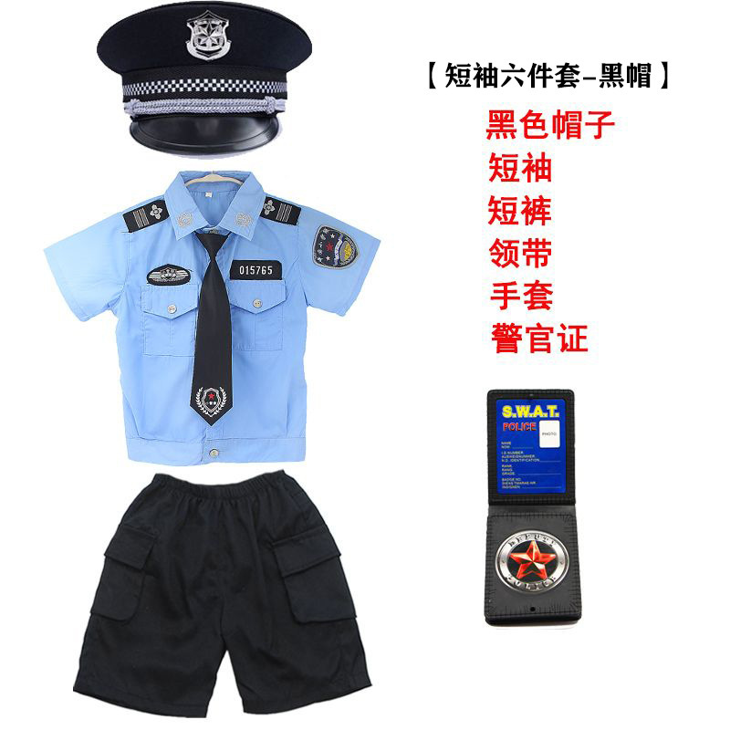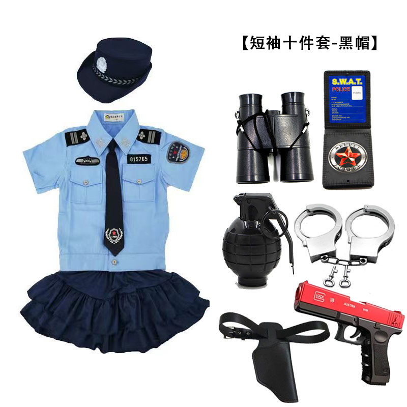 • 같은 스타일의 남성과 여성-경찰 짧은 소매 10 피스 세트 [검은 모자]
