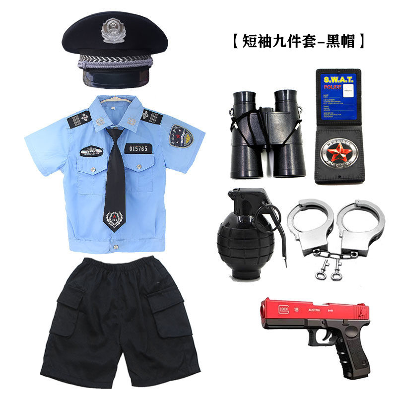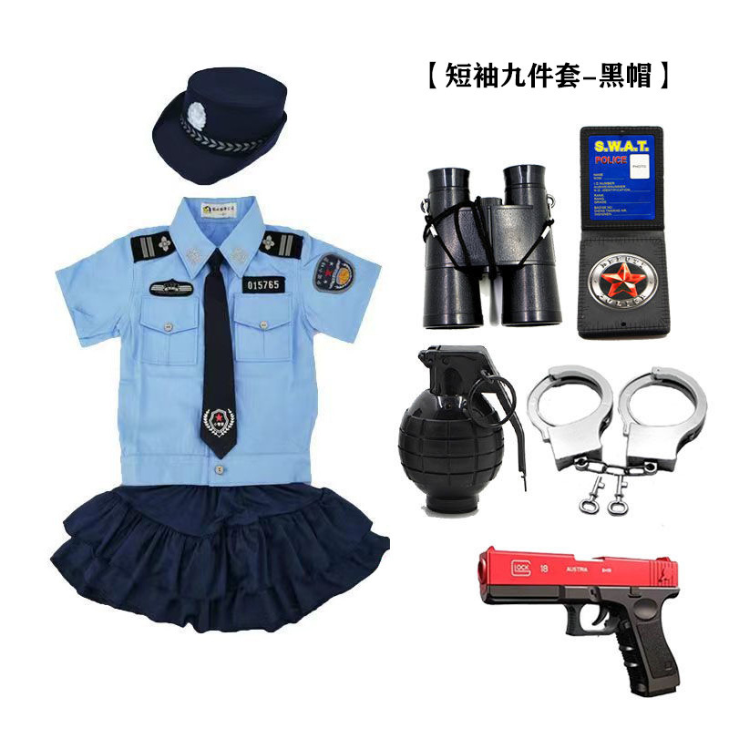 • 같은 스타일의 남성과 여성-경찰 짧은 소매 9 피스 세트 [검은 모자]
