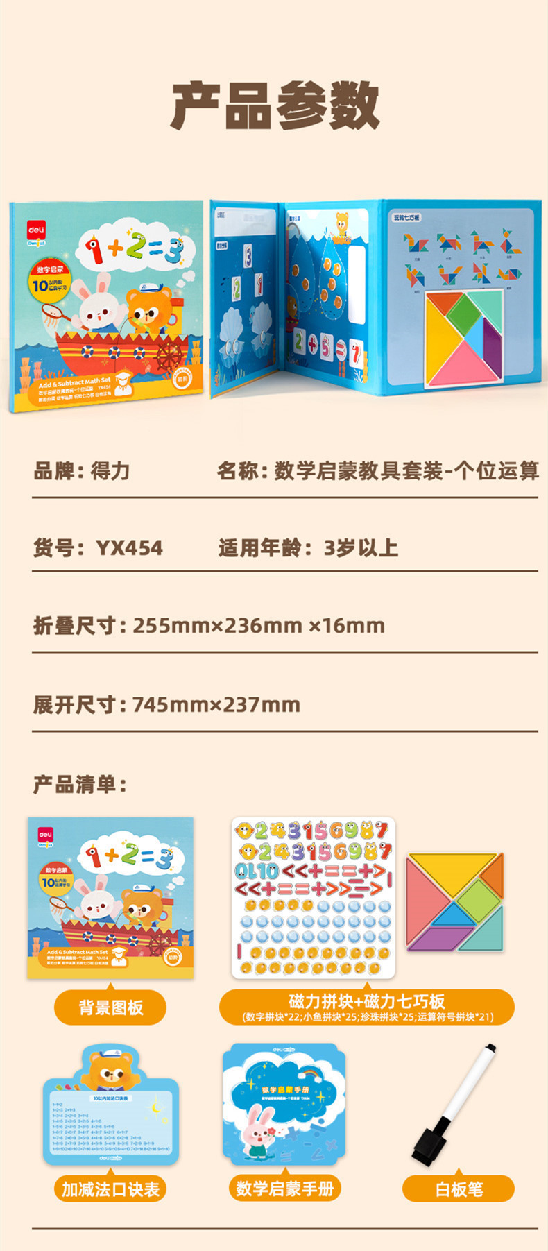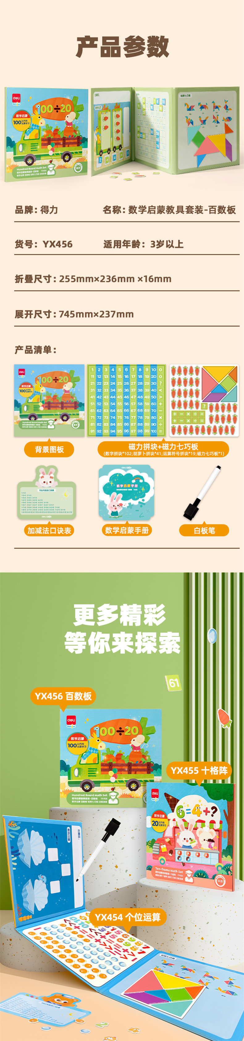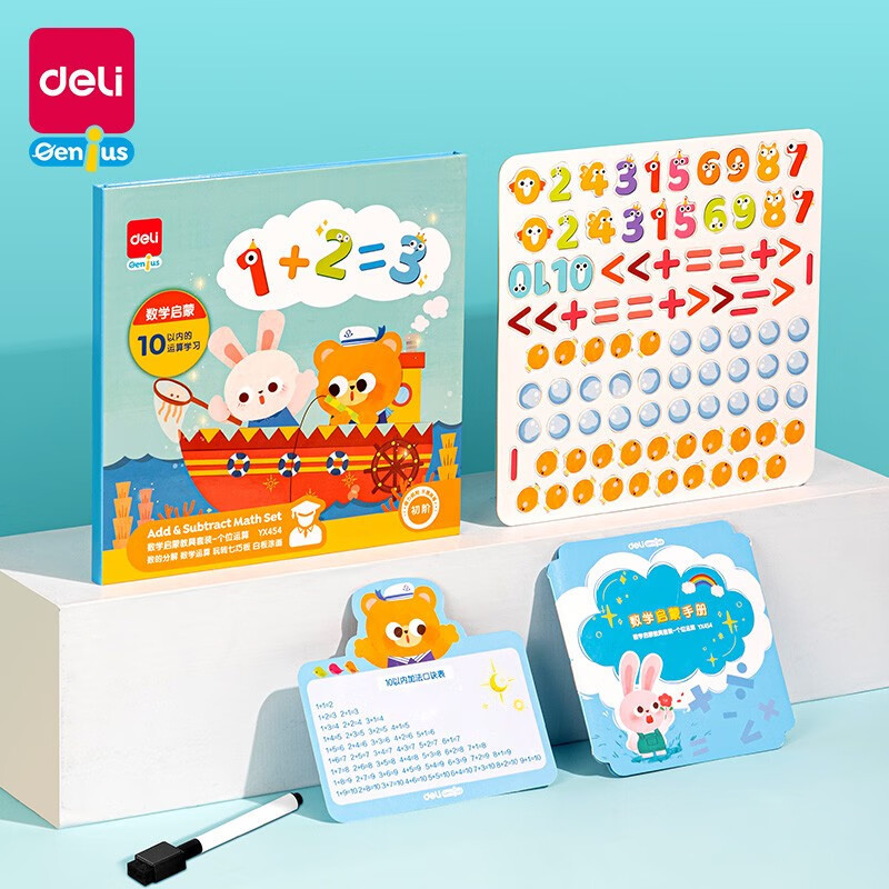 Deli YX454 수학 계몽주의 교육은 세트 비트 작동/10 격자 배열/백번호위원회 유아 교육 학습 인식스토어 가기