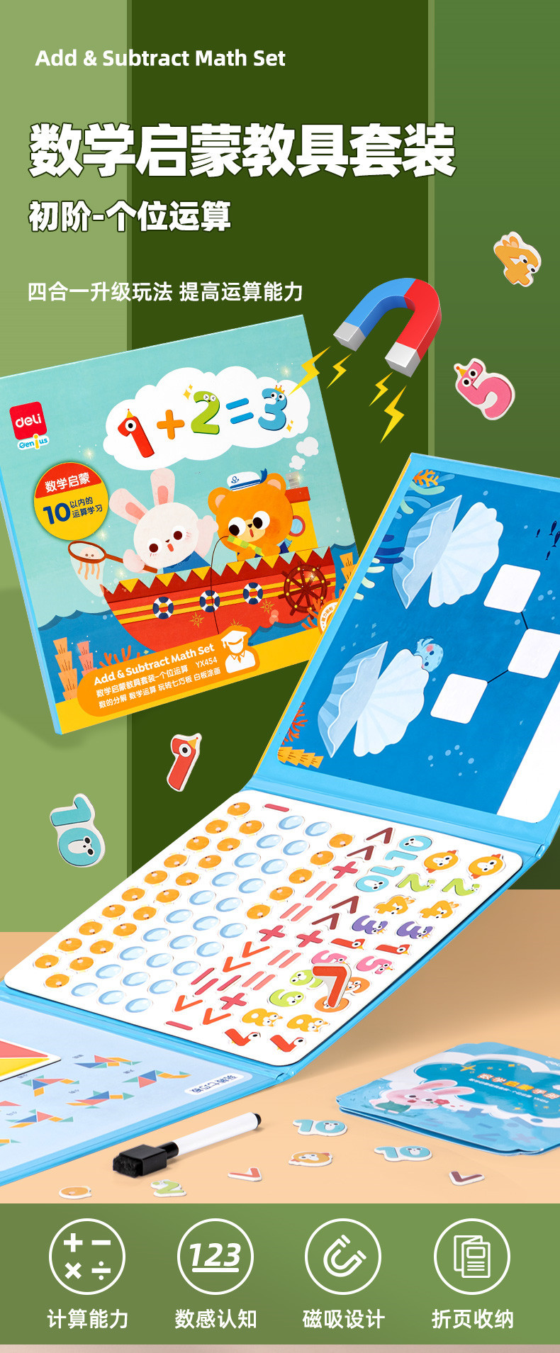 Deli YX454 수학 계몽주의 교육은 세트 비트 작동/10 격자 배열/백번호위원회 유아 교육 학습 인식
