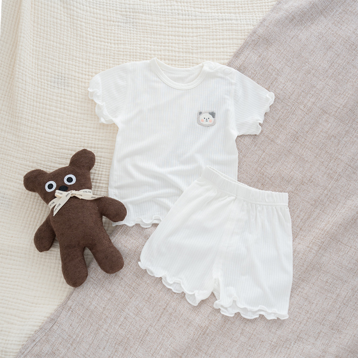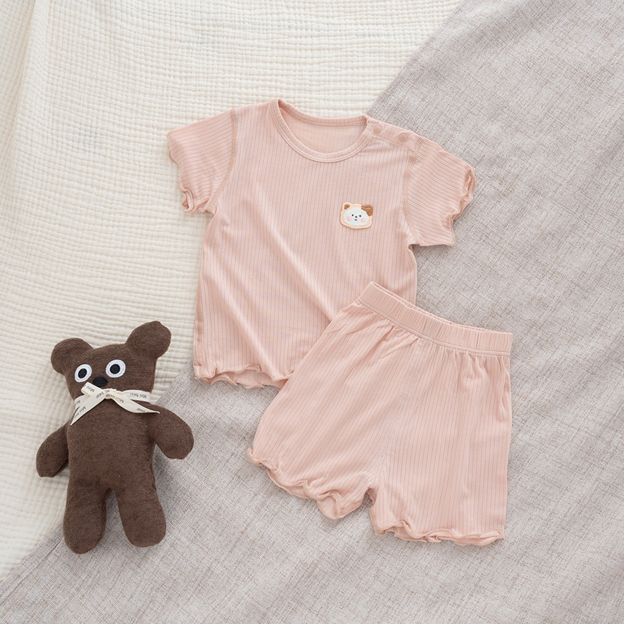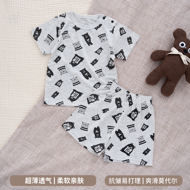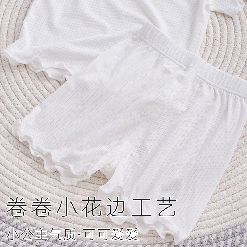 2025 여름 초박형 분할 모달 작은 레이스 정장 아기 소녀 잠옷 작은 공주 반팔 가정 의류스토어 가기