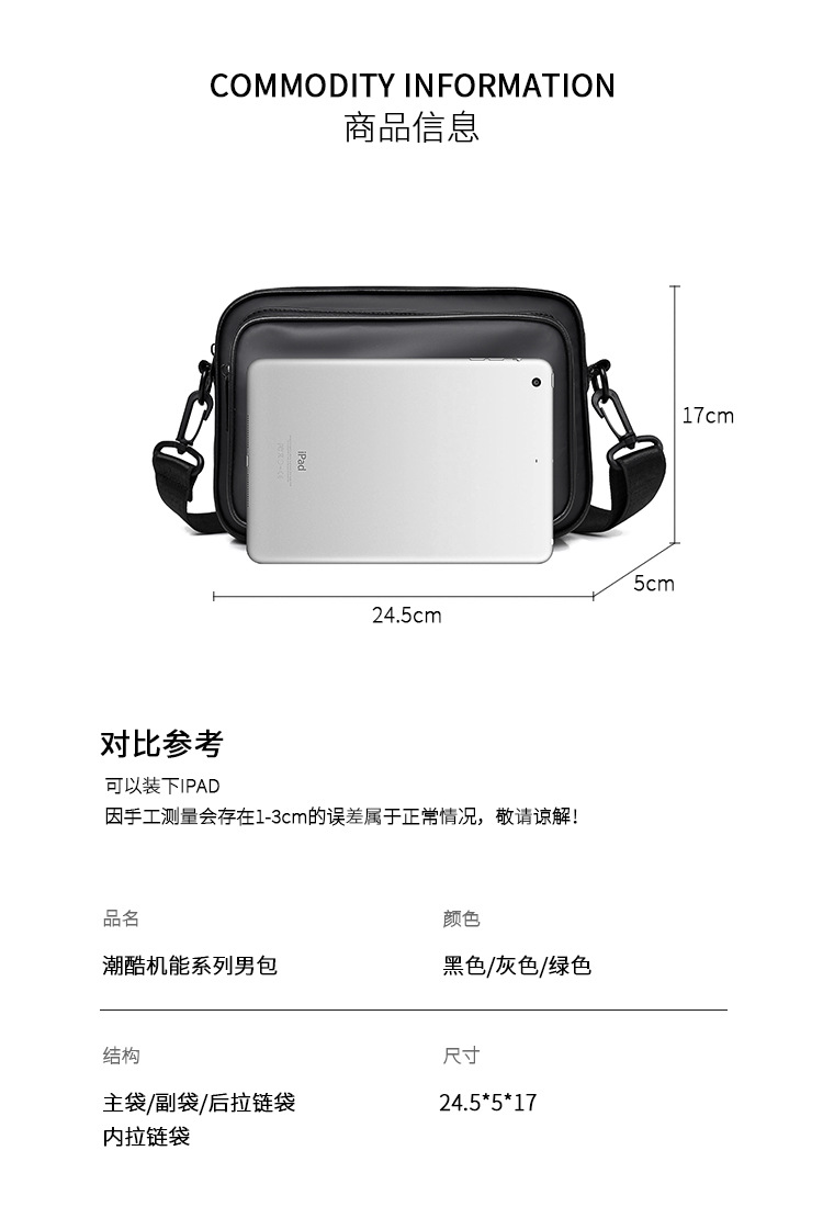 새로운 남성 패션 캐주얼 크로스 바디 백 오토바이 유행 어깨 가방 통근 공장 도매 스트레이트 헤어