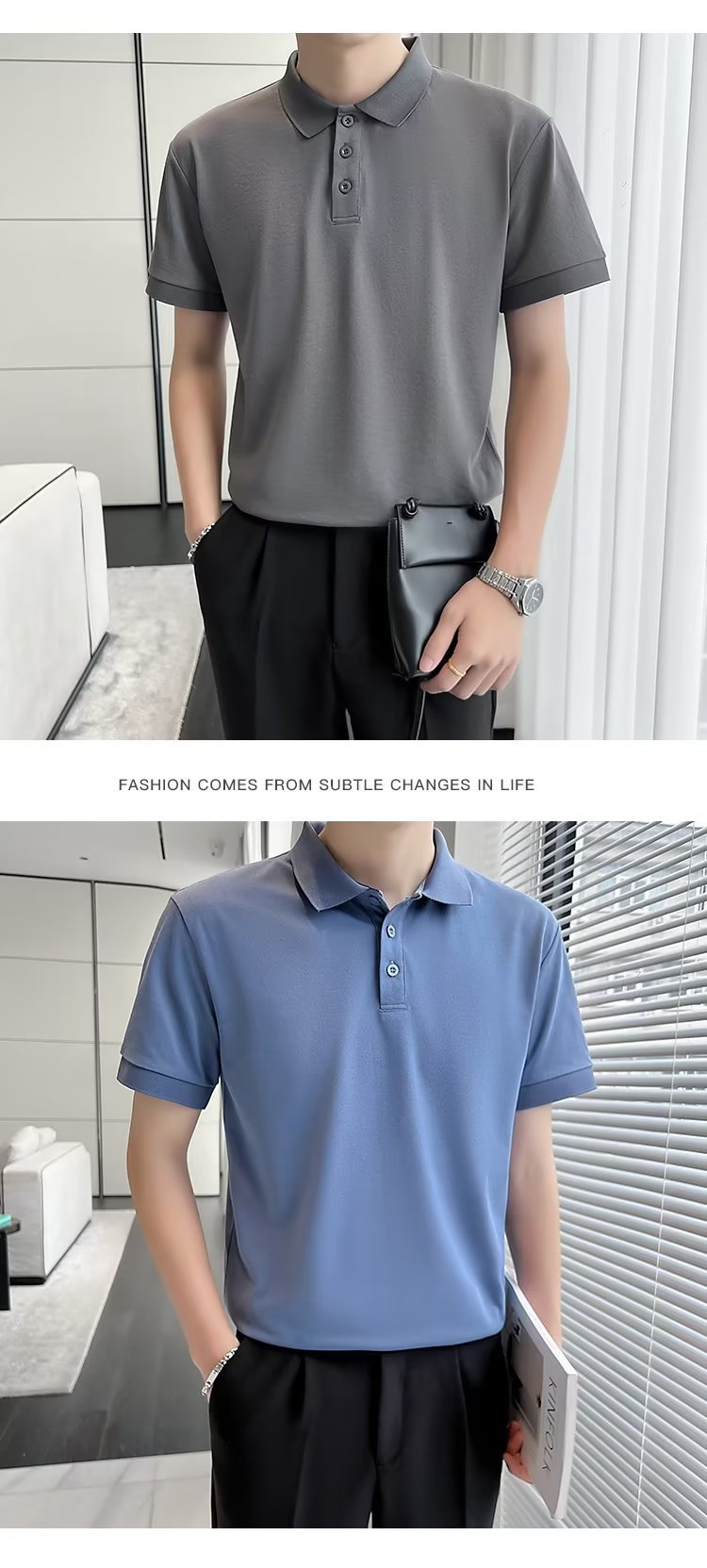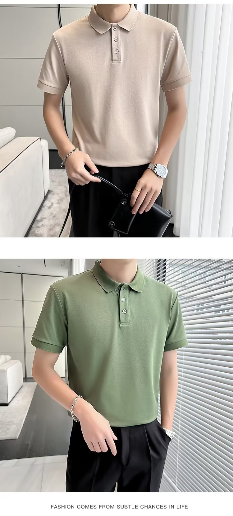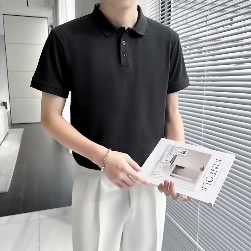 단색 남성 표준 2023 예술적 폴로 셔츠 유행 새로운 스타일 기질 짧은 소매 청소년 인기 하라주쿠 여름
