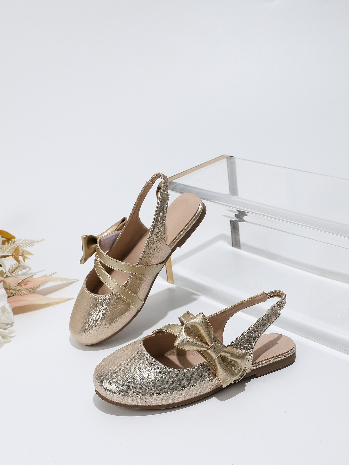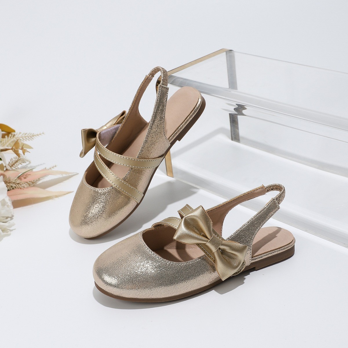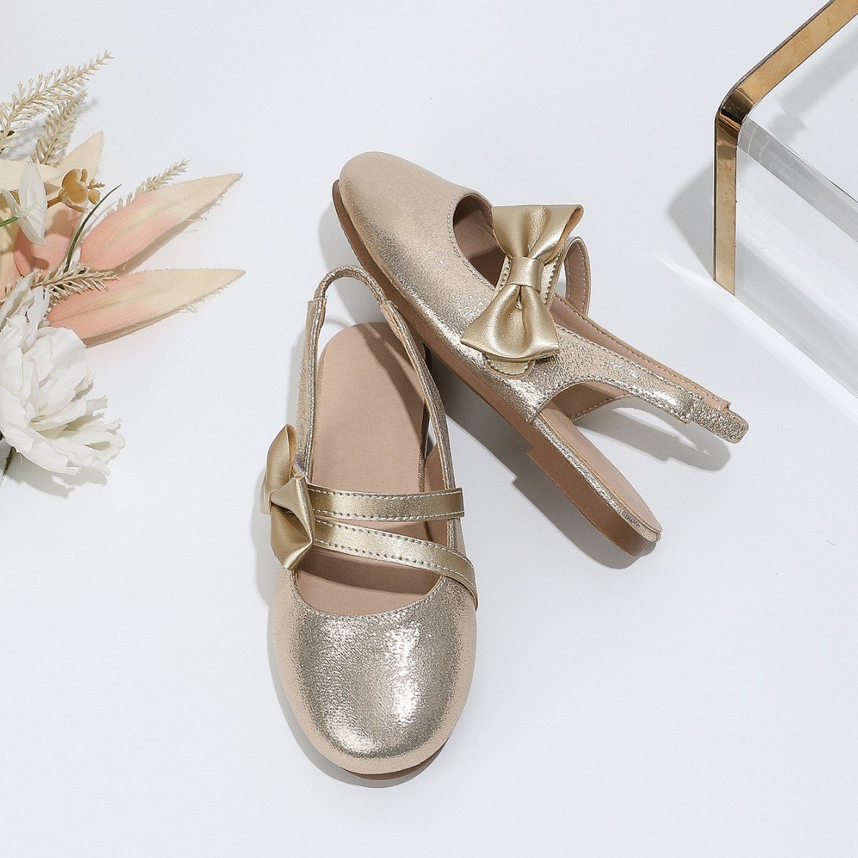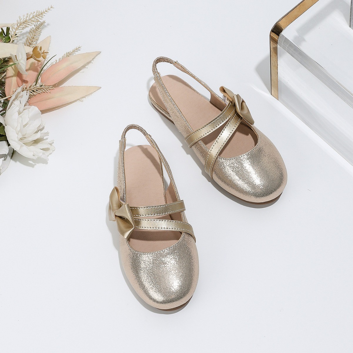 크로스보더 여아용 2026 봄 가을 신상품 공연용 슬립온 슈즈, 리본 장식, 미끄럼 방지, 공주풍, 골드 색상, 해외 수출용