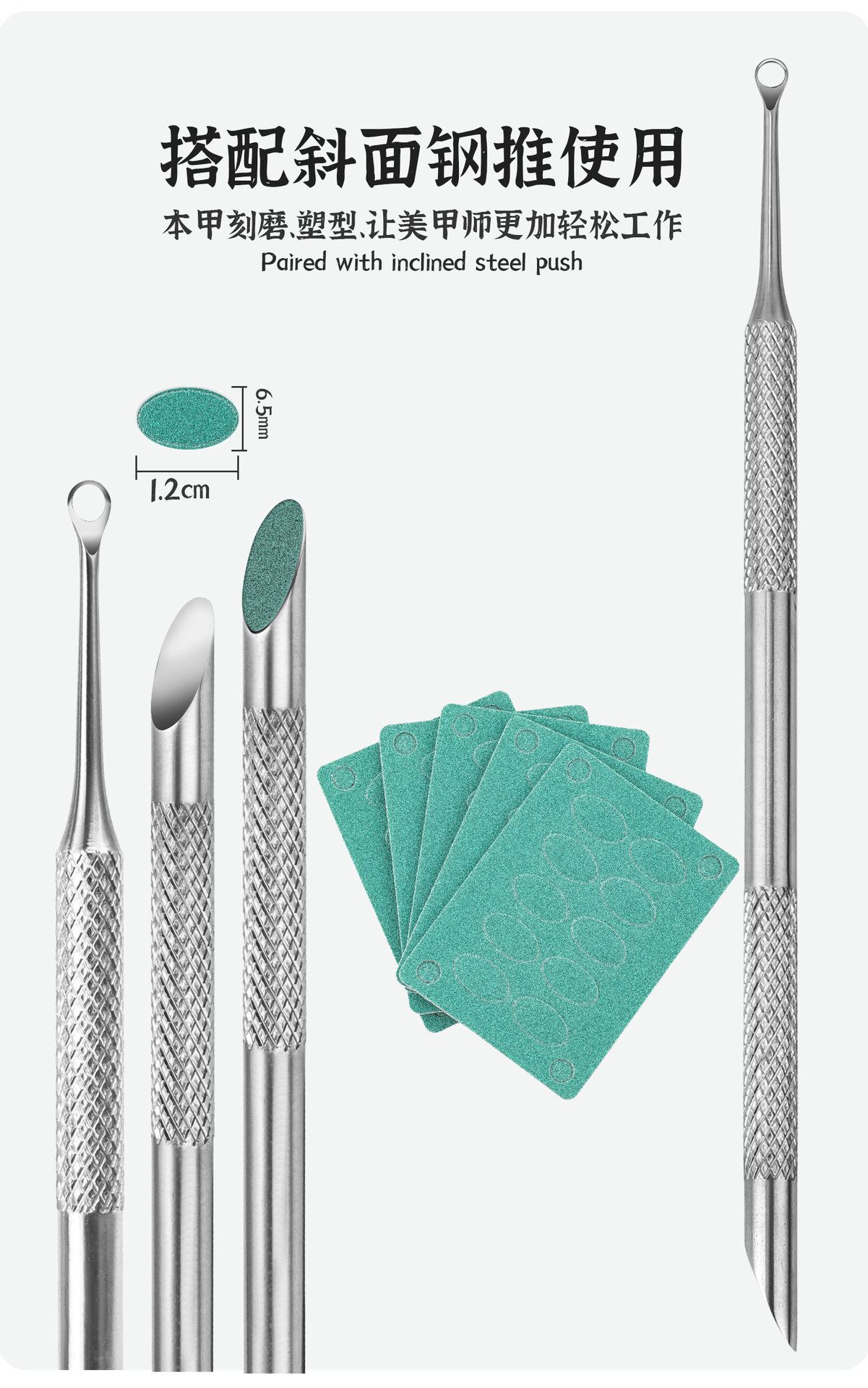 인기 상품: 코일형 경사면 강철 푸셔, 원형 경사 헤드 스크레이퍼, 양면 소형 강철 푸셔, 사포 연마 스트립, 사포 연마판
