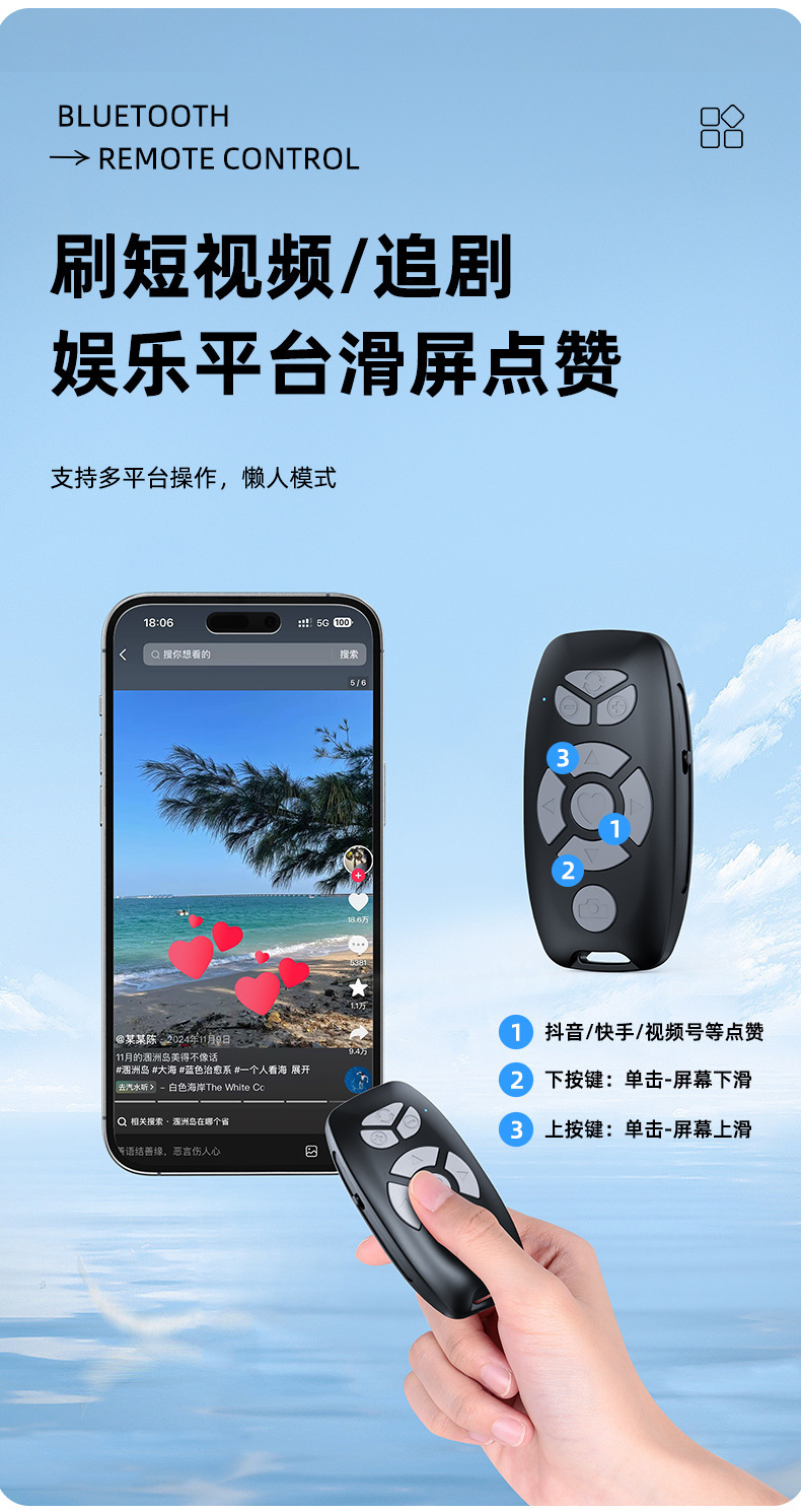 자동차 키 다기능 충전 블루투스 셀카 박수 떨림 빠른 손 브러시 비디오 칭찬 사진 유니버설 10 미터스토어 가기