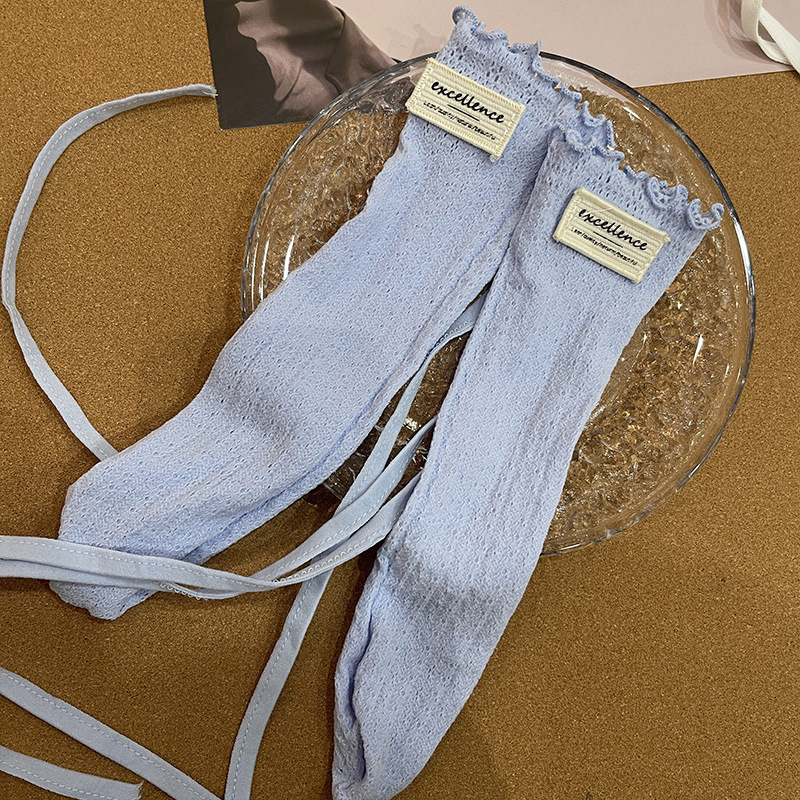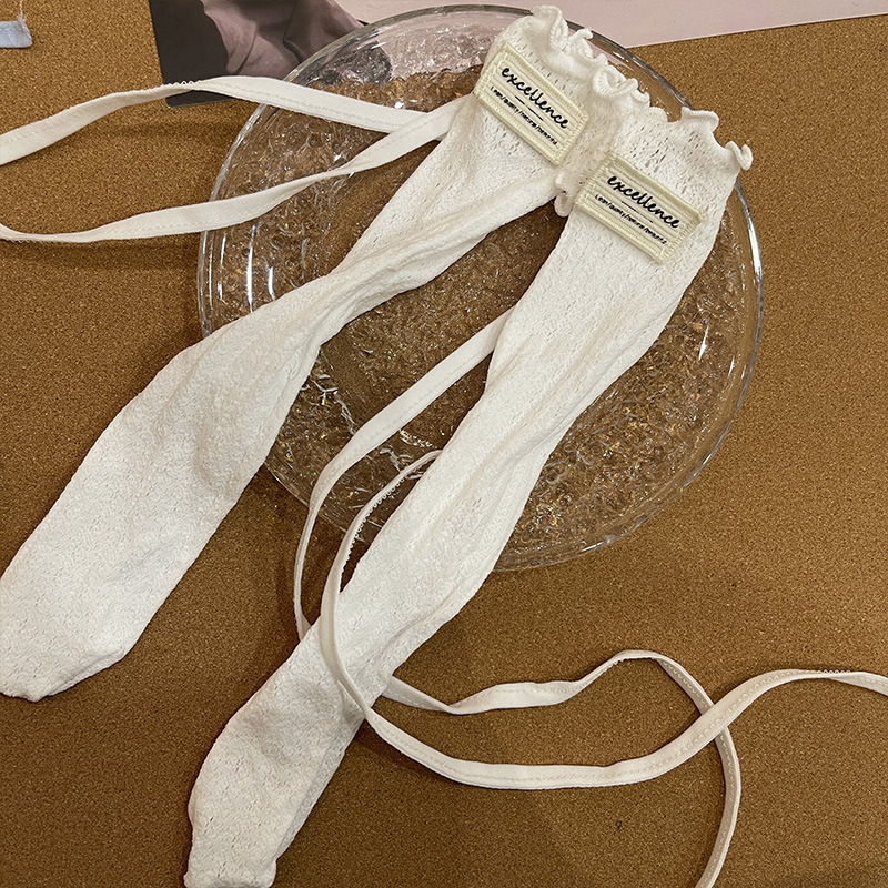 봄과 여름 디자이너 새로운 레이스 나무 이어 스트랩 문자 라벨 어린이 아기 튜브 양말 한국 소녀스토어 가기