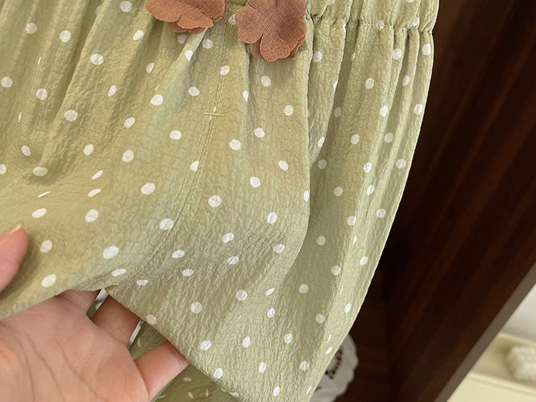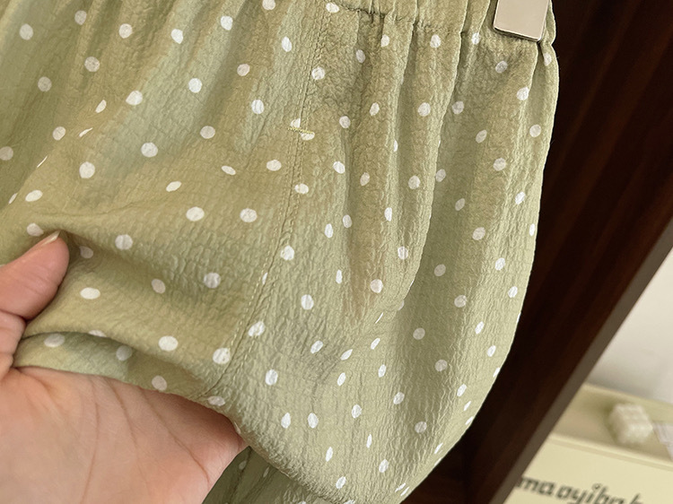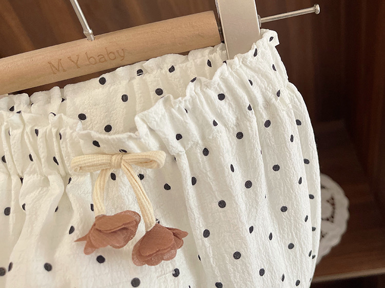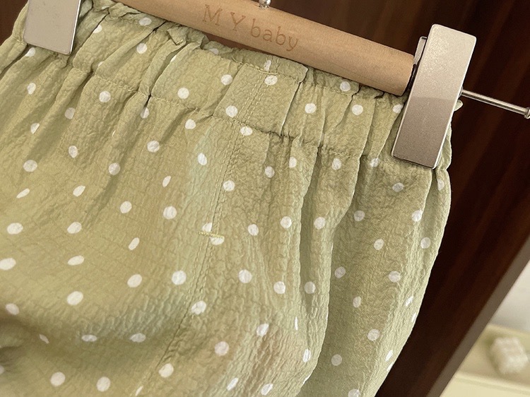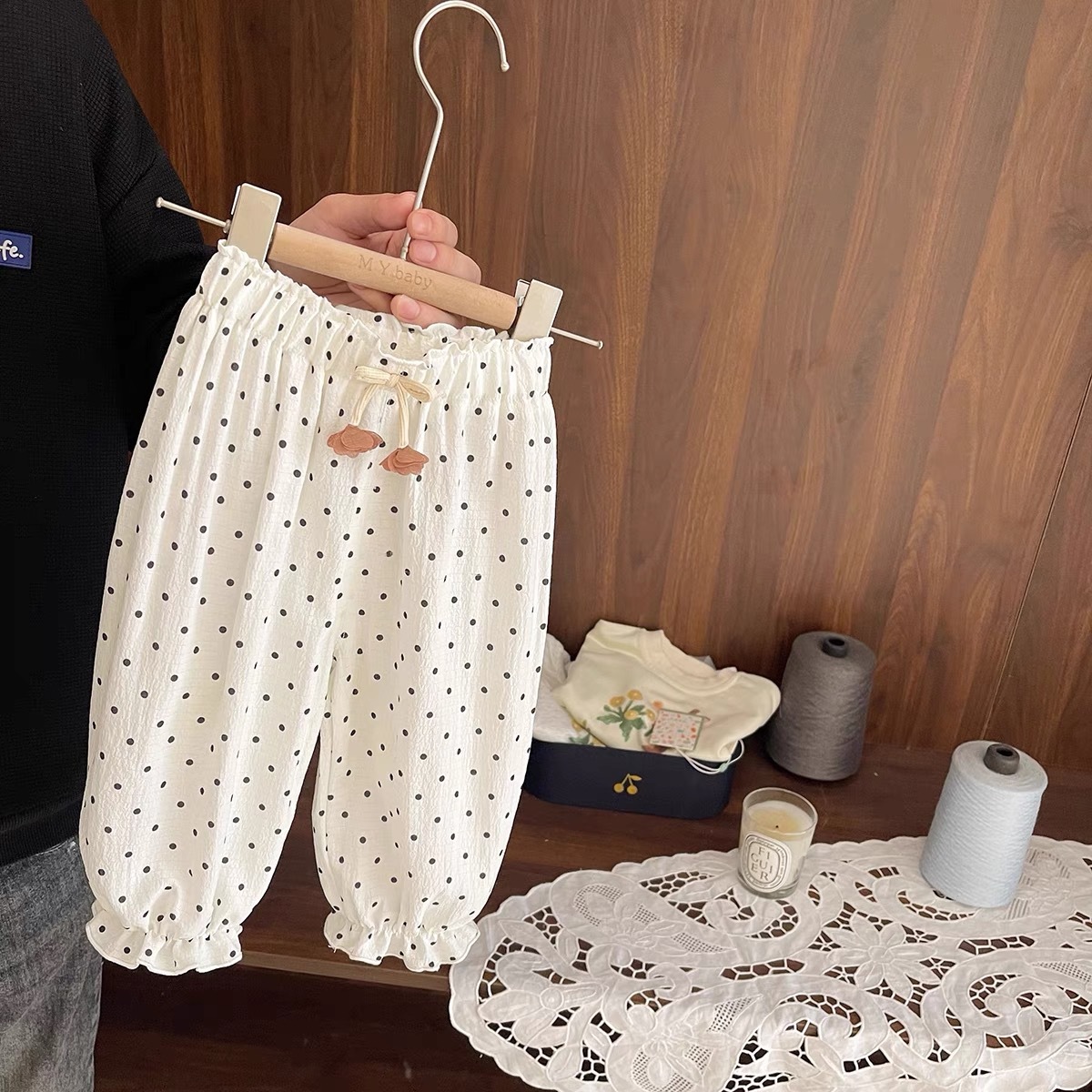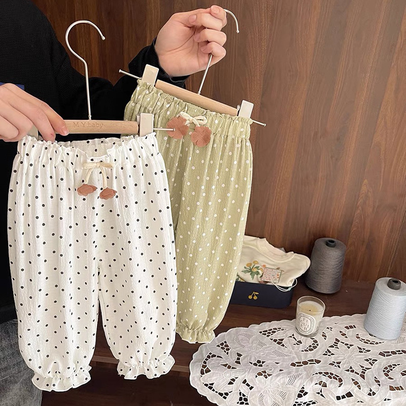 여자 아기 워시 코튼 모기 방지 바지 여자 아기 여름 옷 새로운 여자 폴카 도트 랜턴 바지는 시원하고 통기성이 있습니다