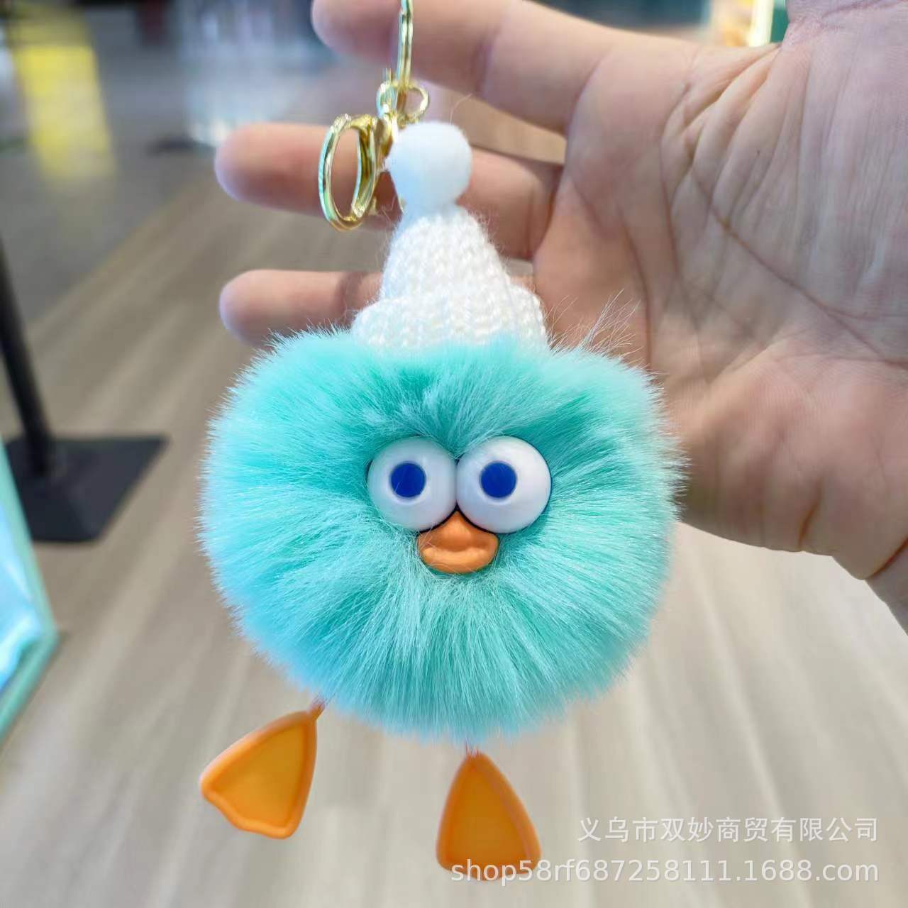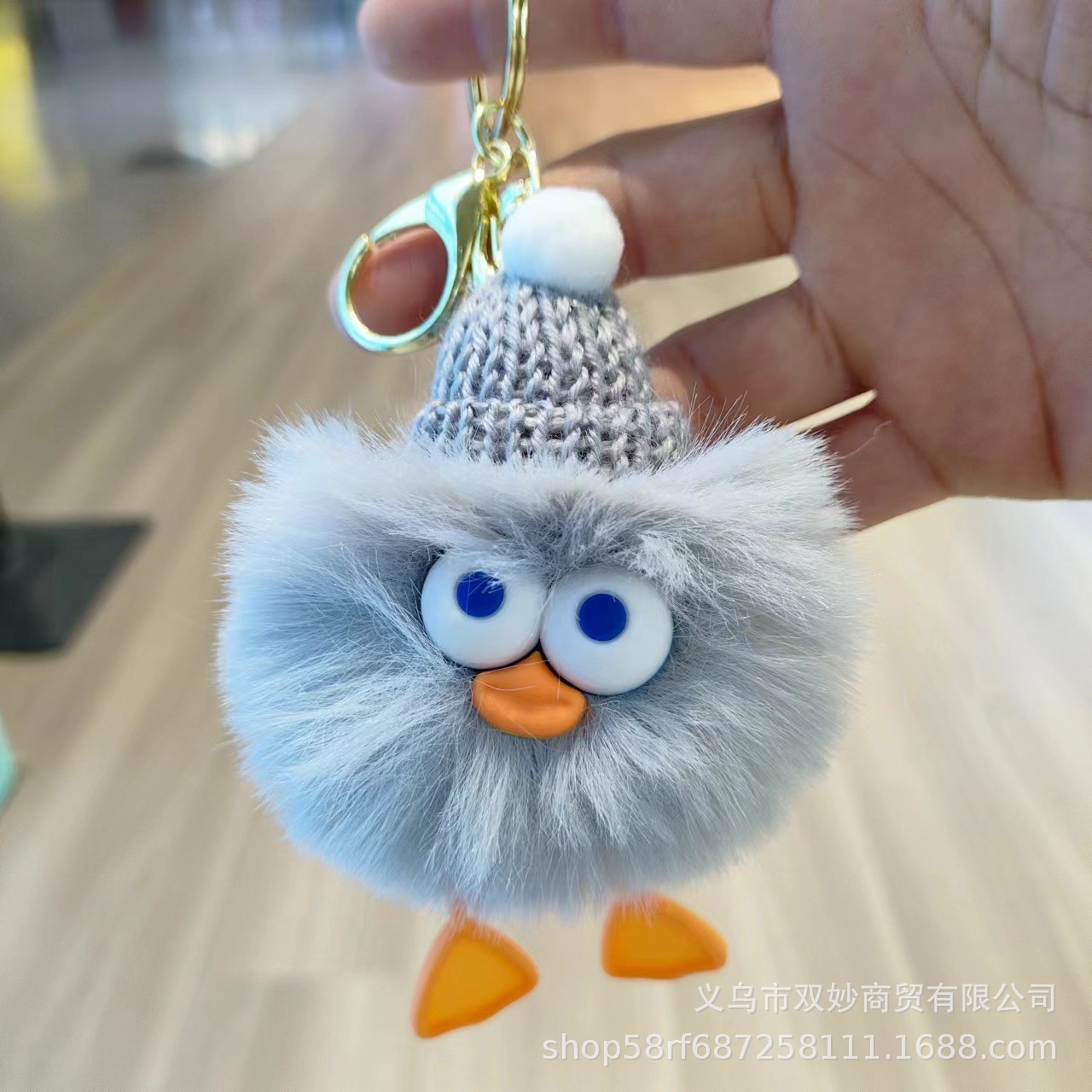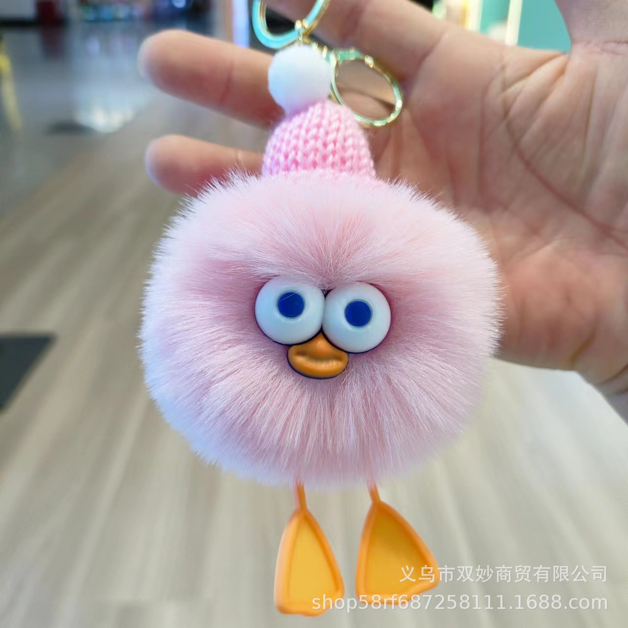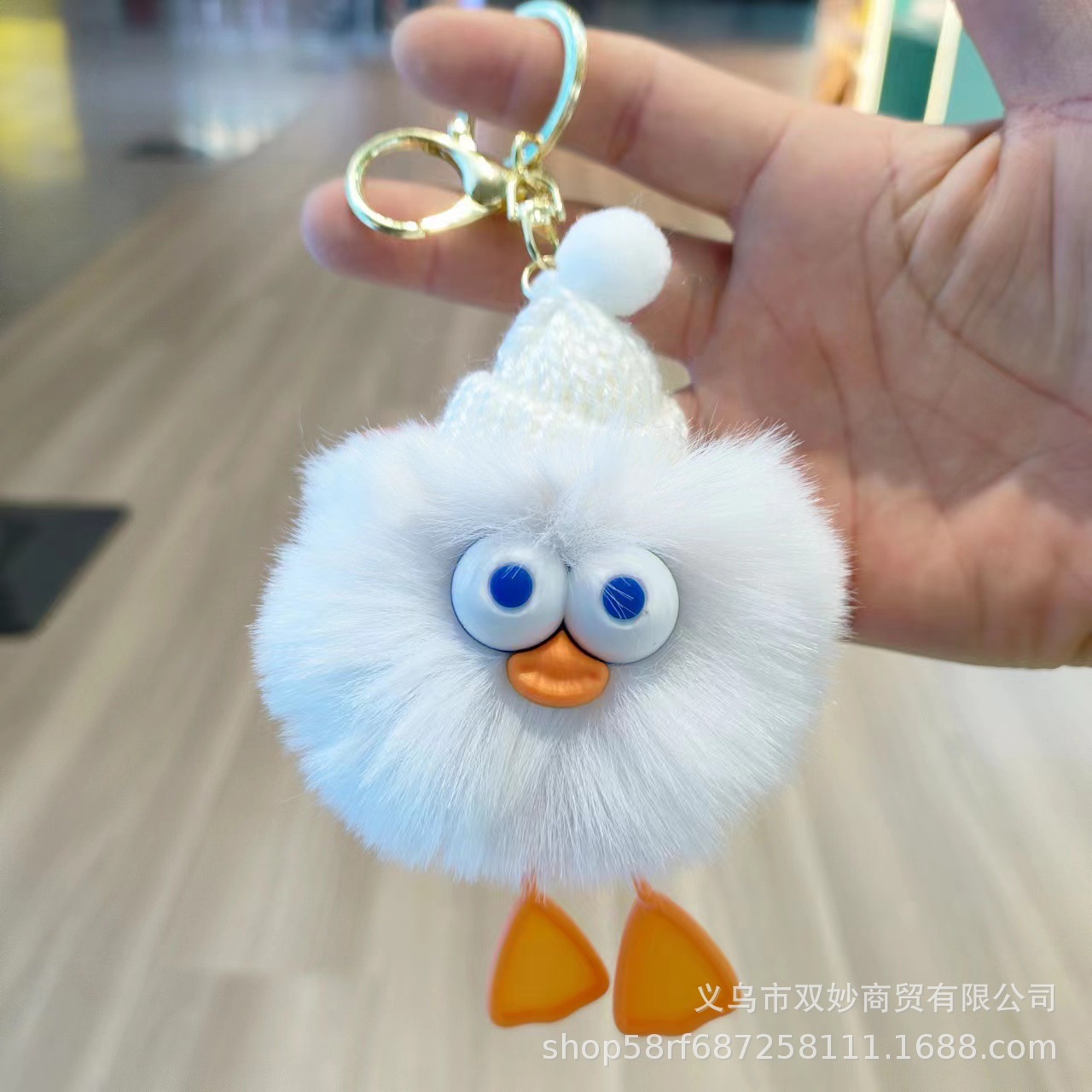 새로운 모조 렉스 토끼 플러시 큰 눈 오리 가방 펜던트 플러시 자동차 키 체인 펜던트 도매 부티크 기계 전용스토어 가기