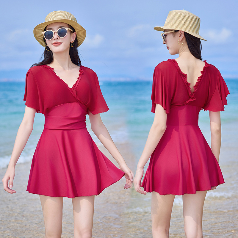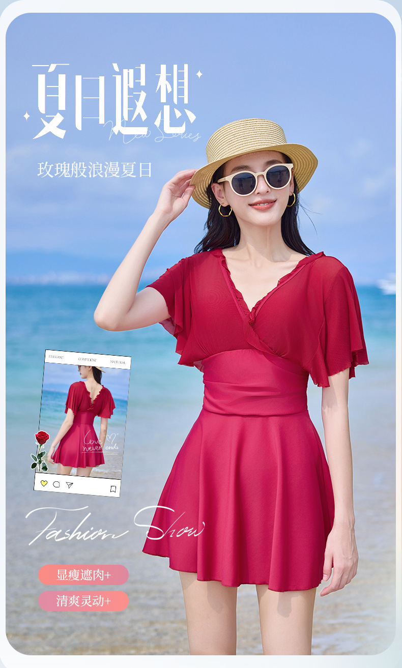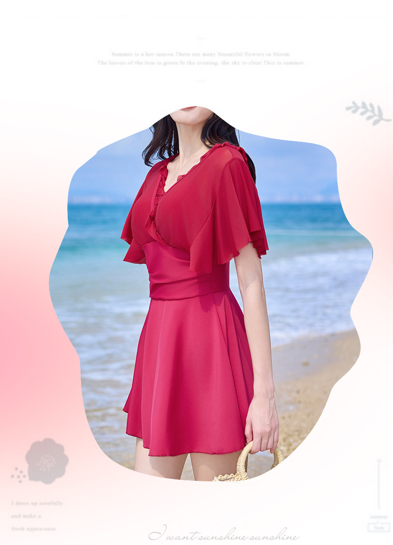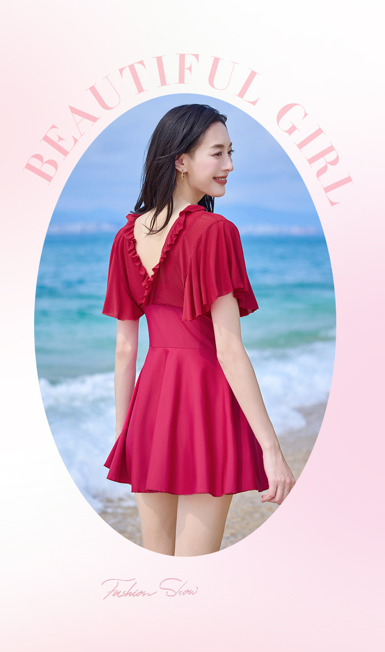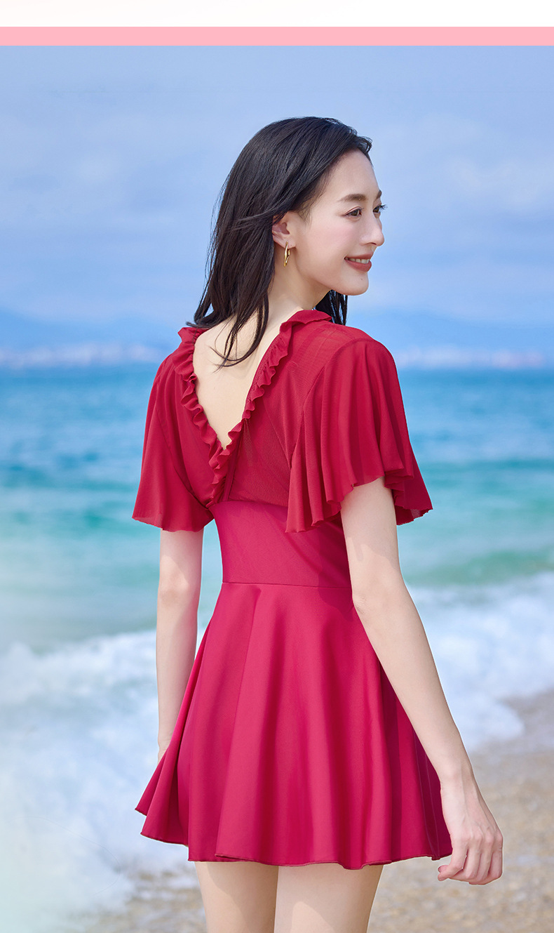 새로운 스타일 메쉬 플로팅 슬리브 여성 수영 원피스 달콤한 수영복 높은 허리 슬리밍 가슴 패드 섹시한 백리스 수영복
