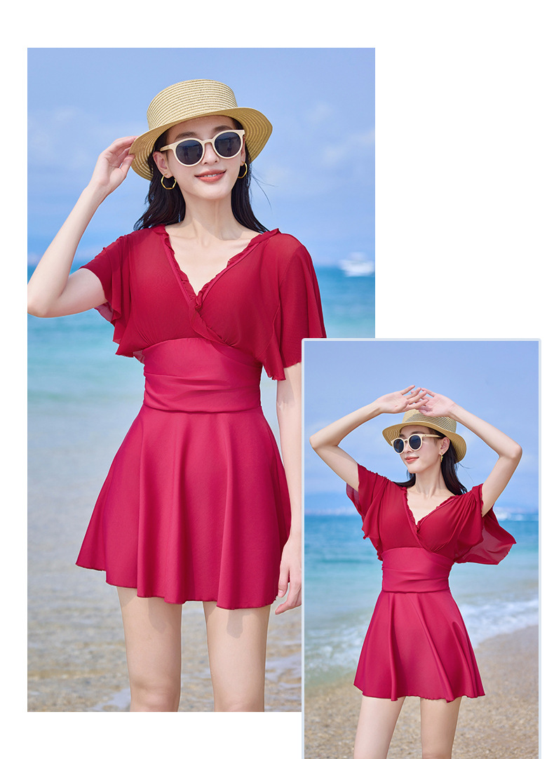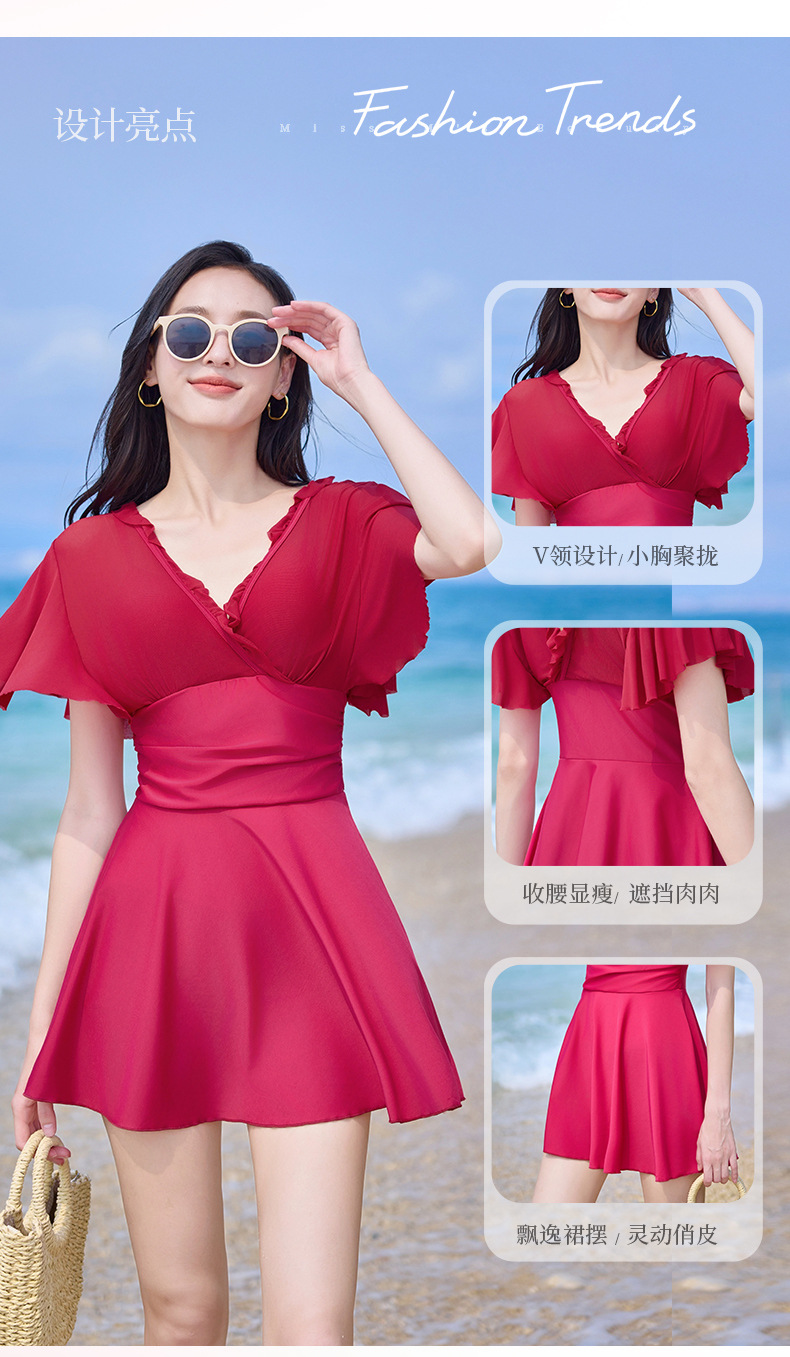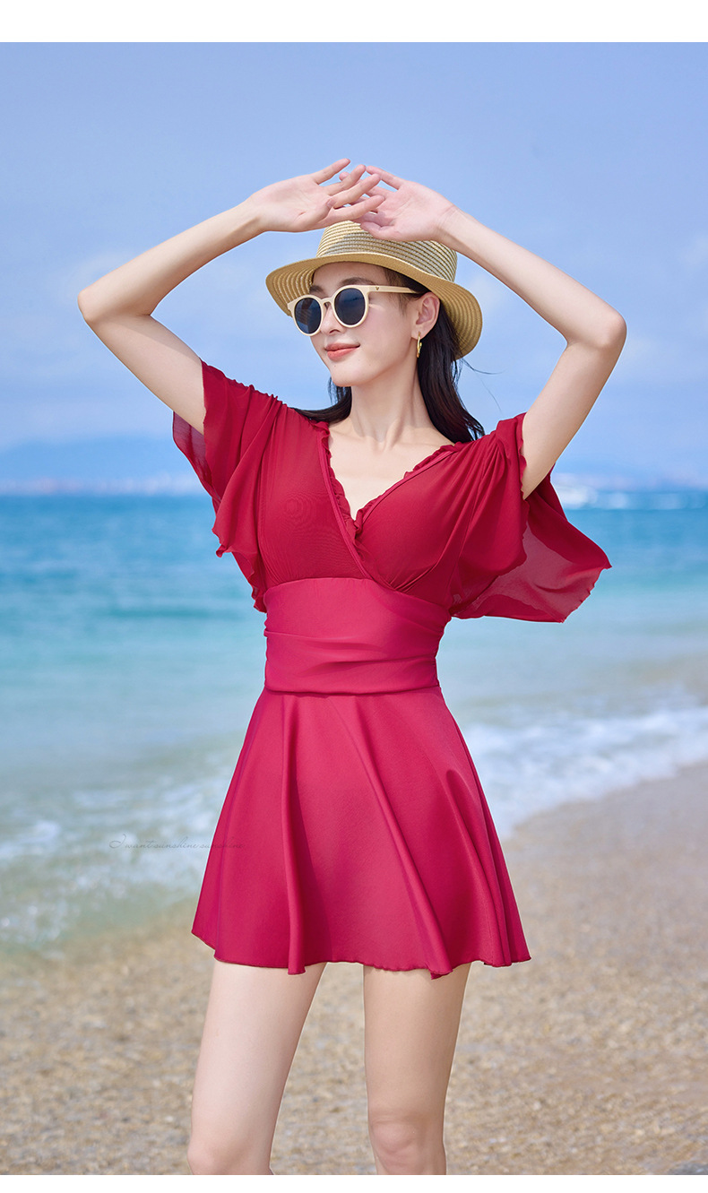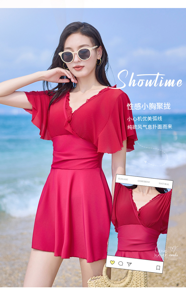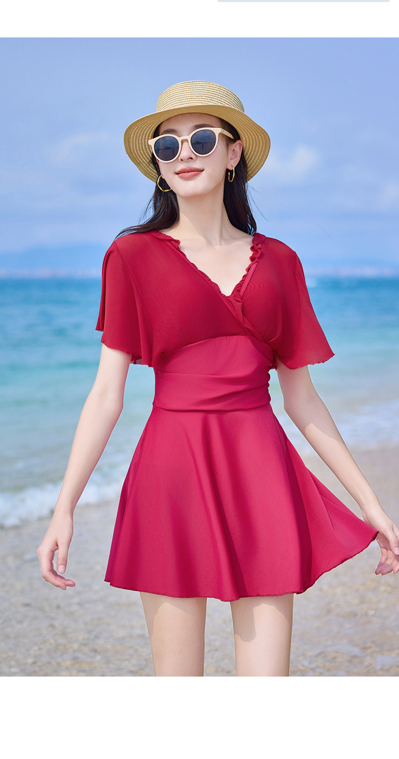 새로운 스타일 메쉬 플로팅 슬리브 여성 수영 원피스 달콤한 수영복 높은 허리 슬리밍 가슴 패드 섹시한 백리스 수영복