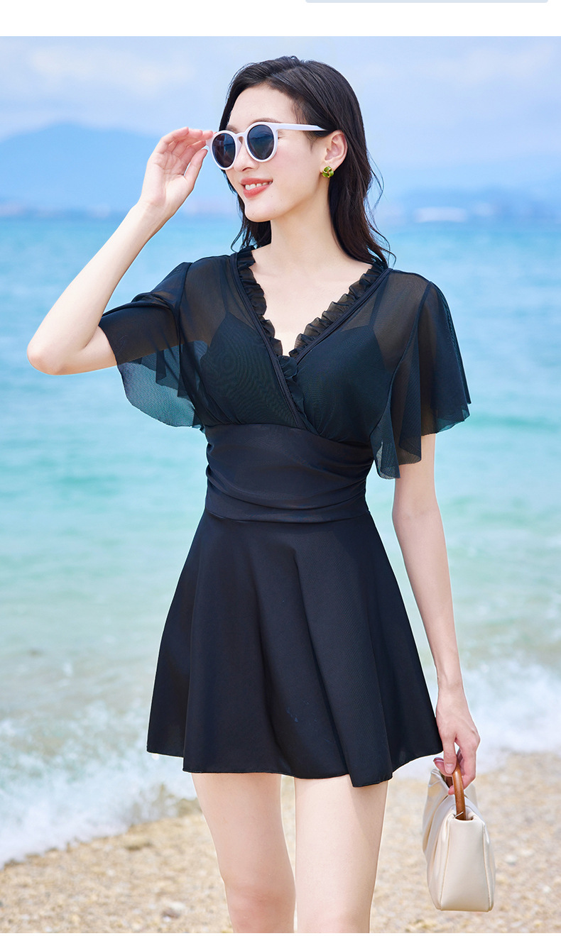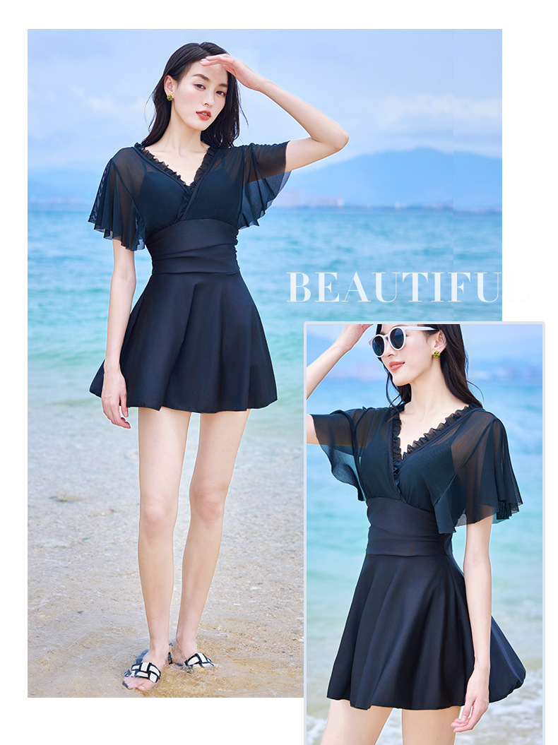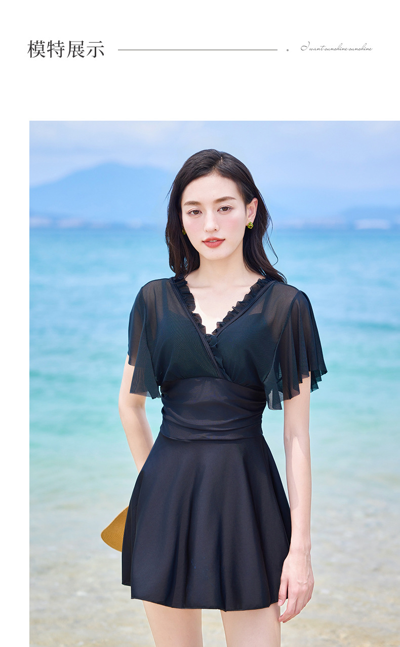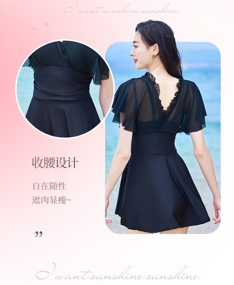 새로운 스타일 메쉬 플로팅 슬리브 여성 수영 원피스 달콤한 수영복 높은 허리 슬리밍 가슴 패드 섹시한 백리스 수영복스토어 가기