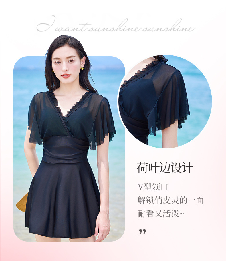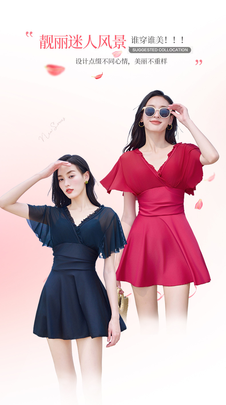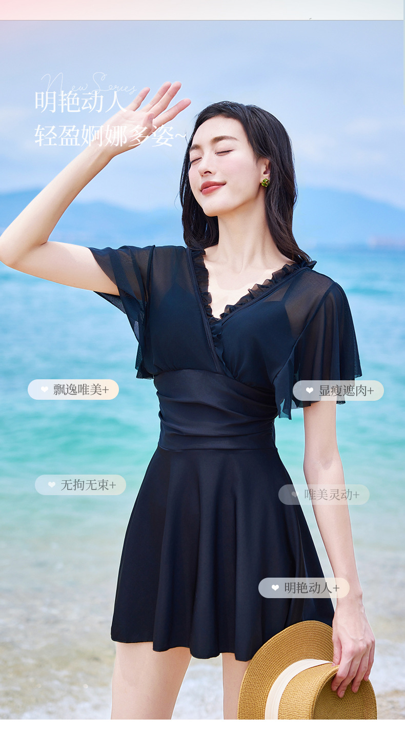 새로운 스타일 메쉬 플로팅 슬리브 여성 수영 원피스 달콤한 수영복 높은 허리 슬리밍 가슴 패드 섹시한 백리스 수영복스토어 가기