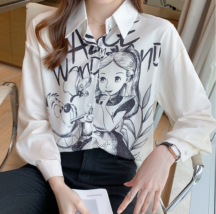 2024 유럽과 미국의 대외 무역 여성의 여름 새로운 포지셔닝 인쇄 느슨한 디자인 셔츠 여성용 쉬폰 탑스토어 가기