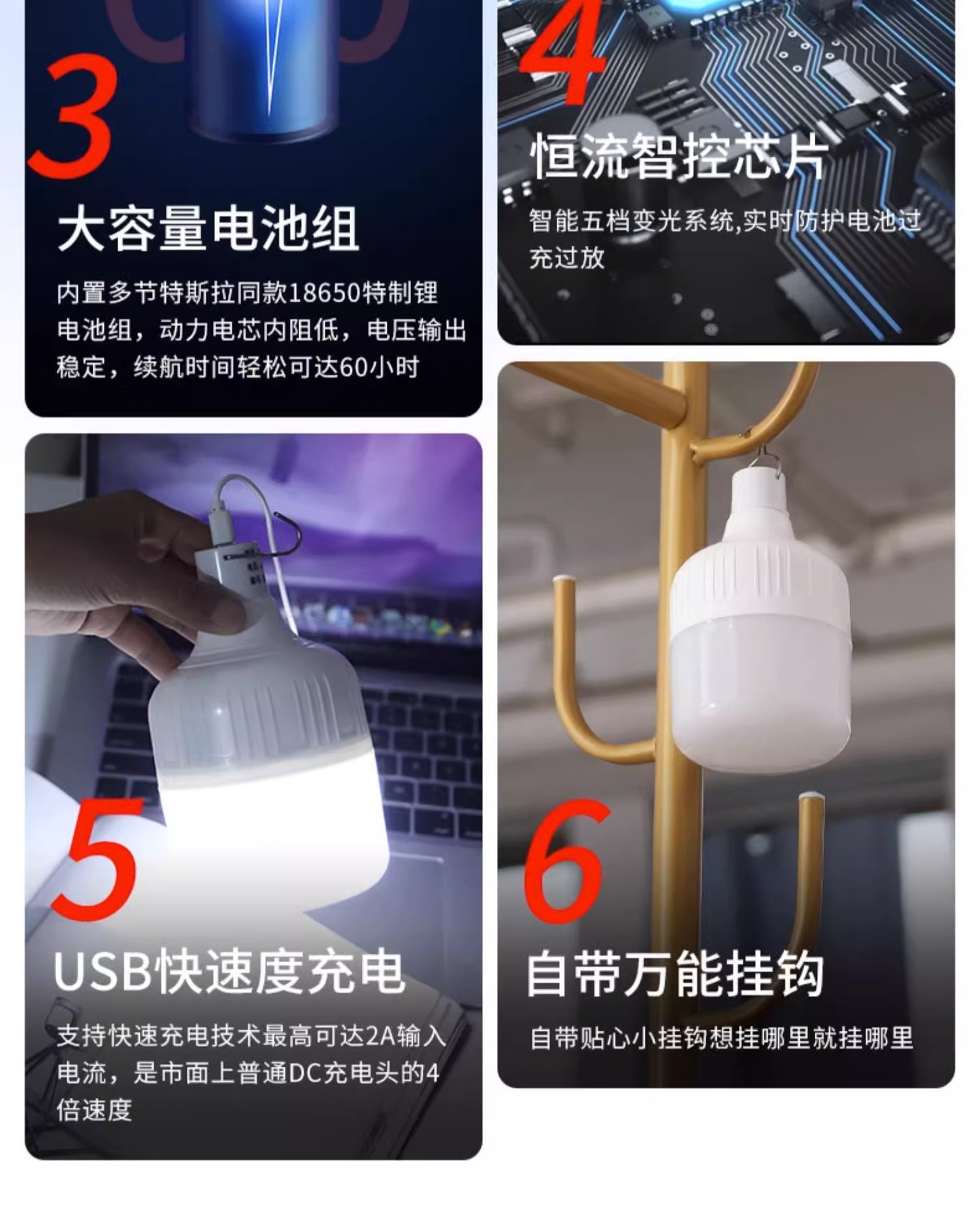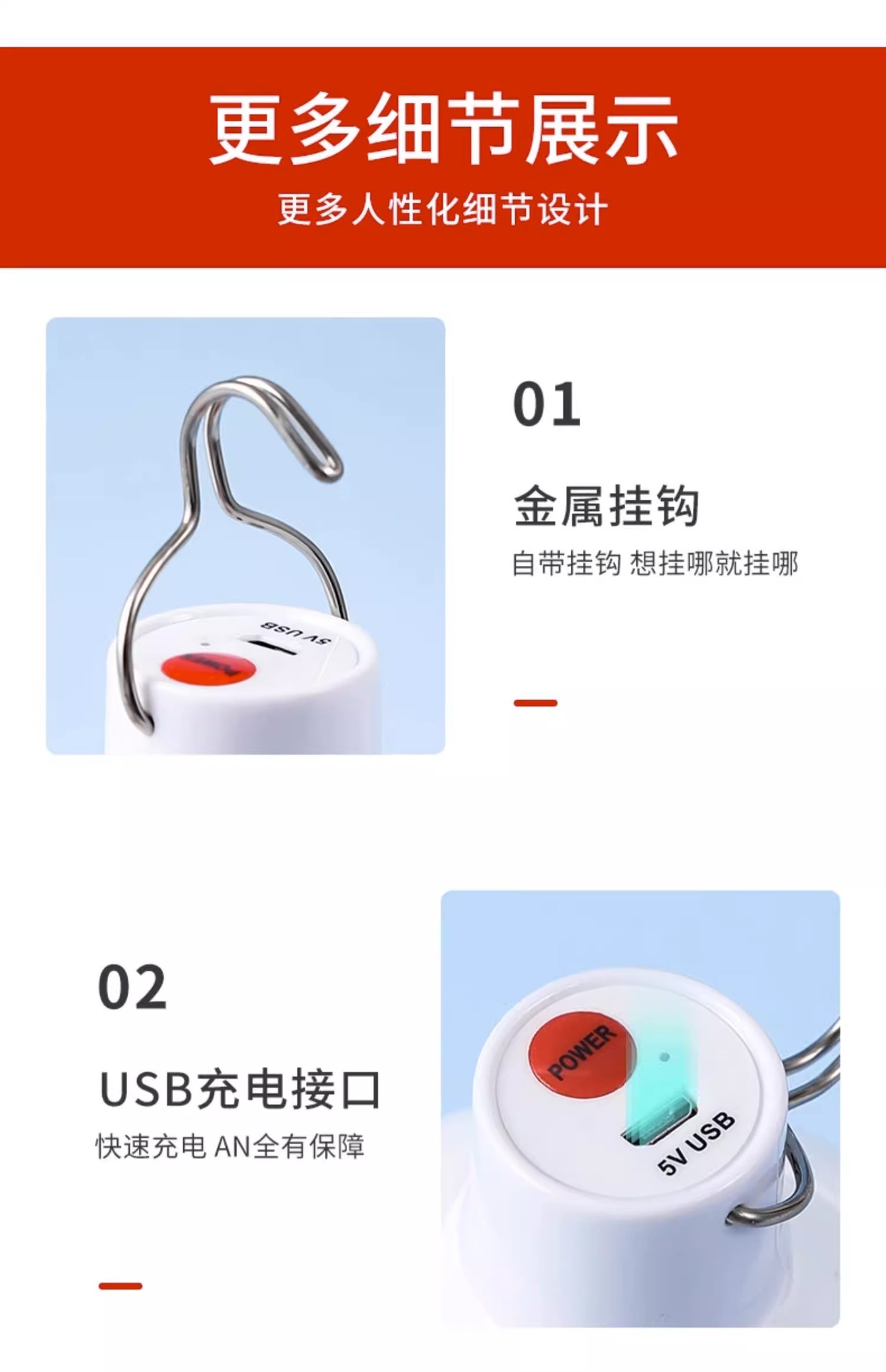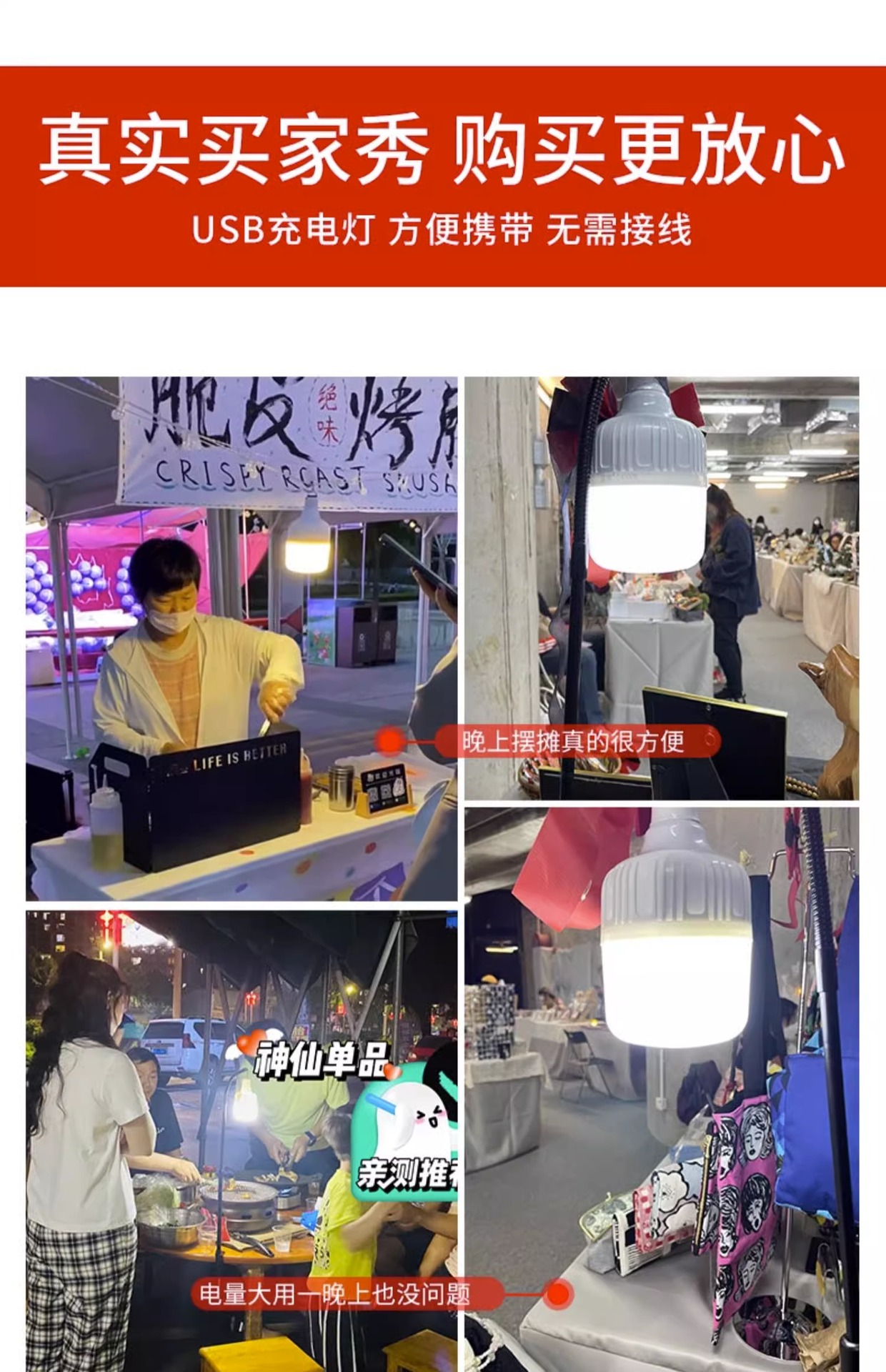야시장 매점 충전식 전구 거리 매점 램프 LED 비상 가정용 브래킷 캠핑 램프 휴대용 야외 조명