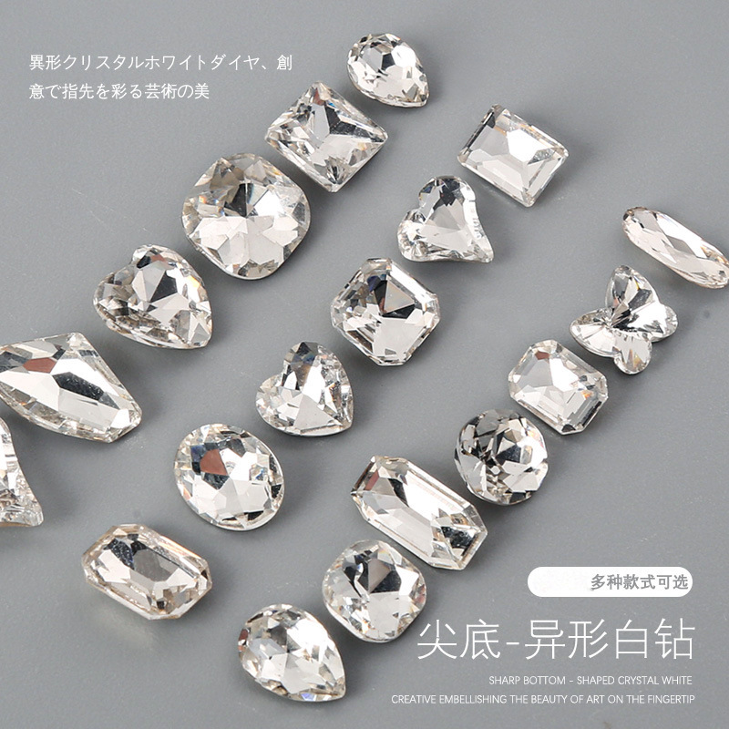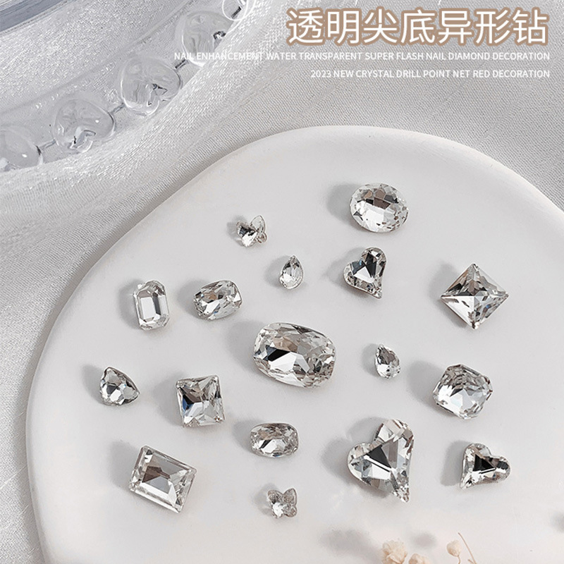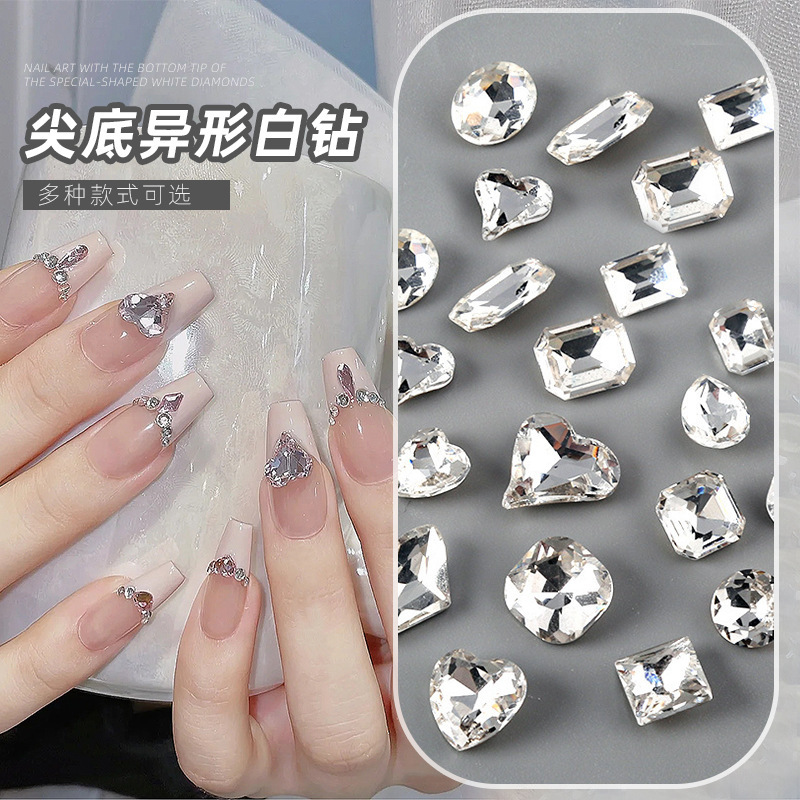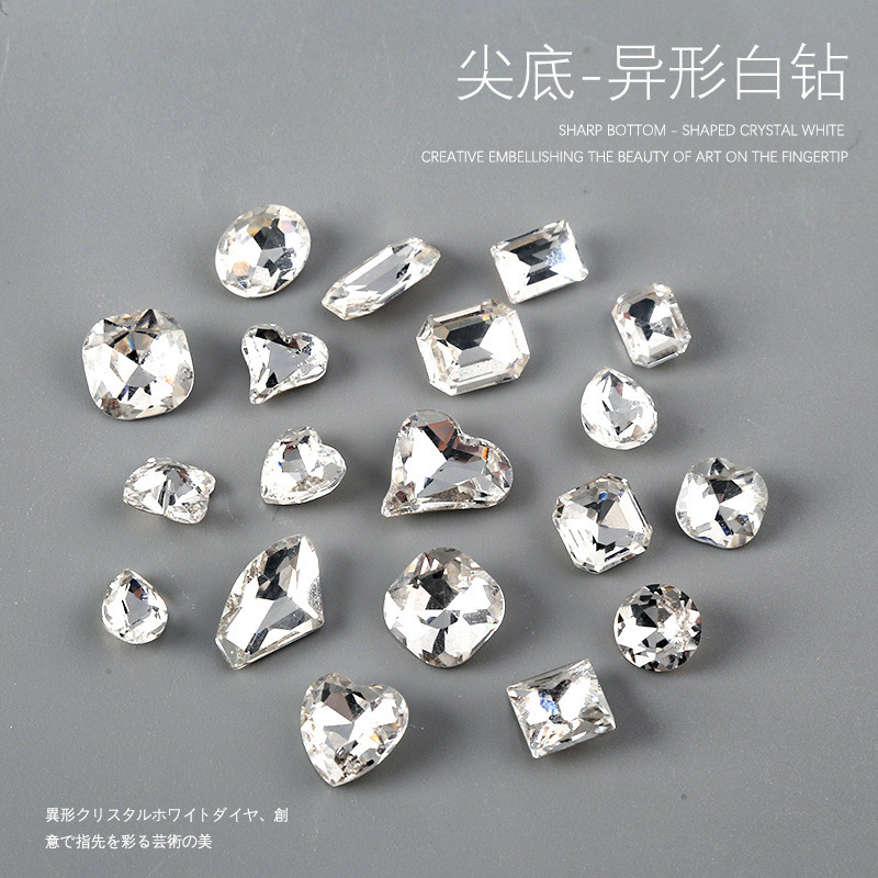화이트 포인트 다이아몬드 넷 축하 네일 아트 쥬얼리 슈퍼 플래시 투명 다이아몬드 사랑 지방 광장 물 방울 화이트 다이아몬드 혼합 네일 액세서리스토어 가기