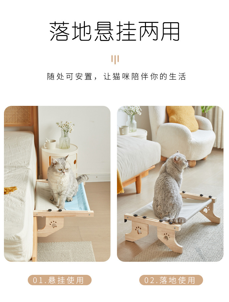 가정용 사계절 고양이 침대, 창문에 걸 수 있는 고양이 해먹, 원목 고양이 침대, 초대형 고양이 해먹 침대