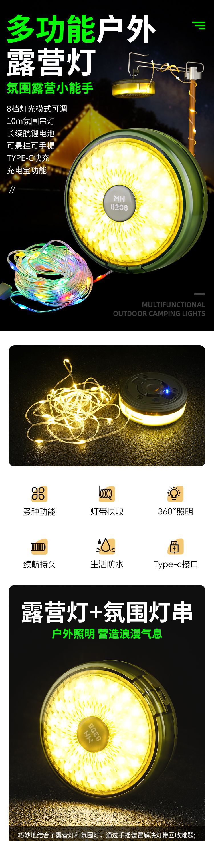 새로운 캠핑 분위기 램프 천장 램프 야외 텐트 램프 장식 리본 램프 끈 램프 캠핑 조명 장비